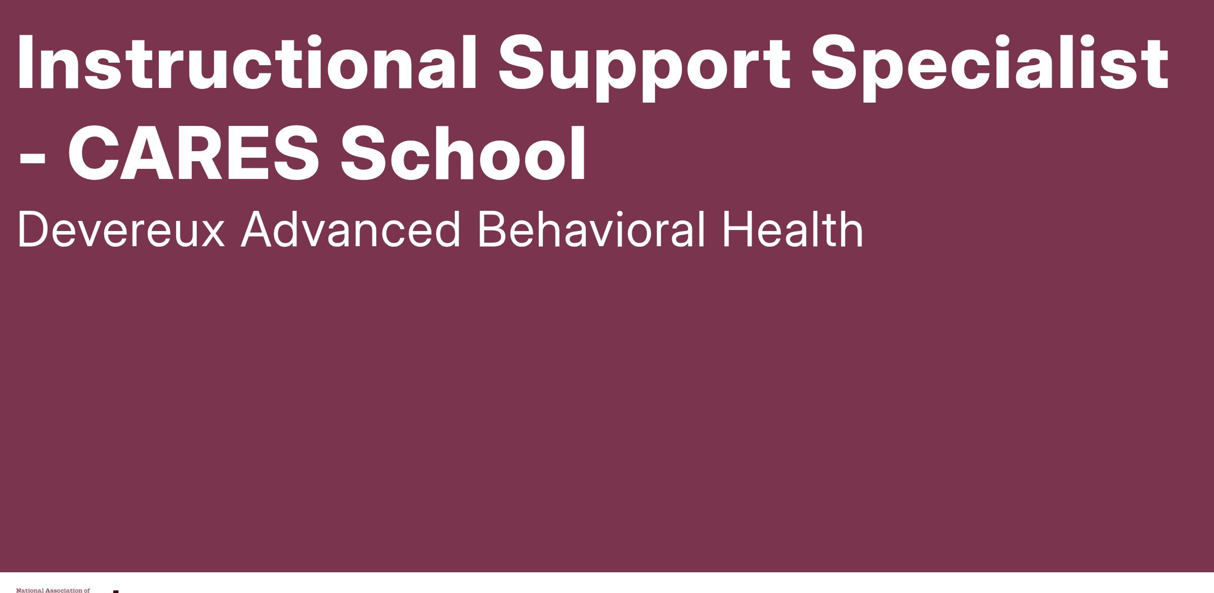 Being an Instructional Support Specialist at Devereux has its advantages! As an Instructional Support Specialist you will work with other dedicated professionals who share your passion for helping individuals in need.