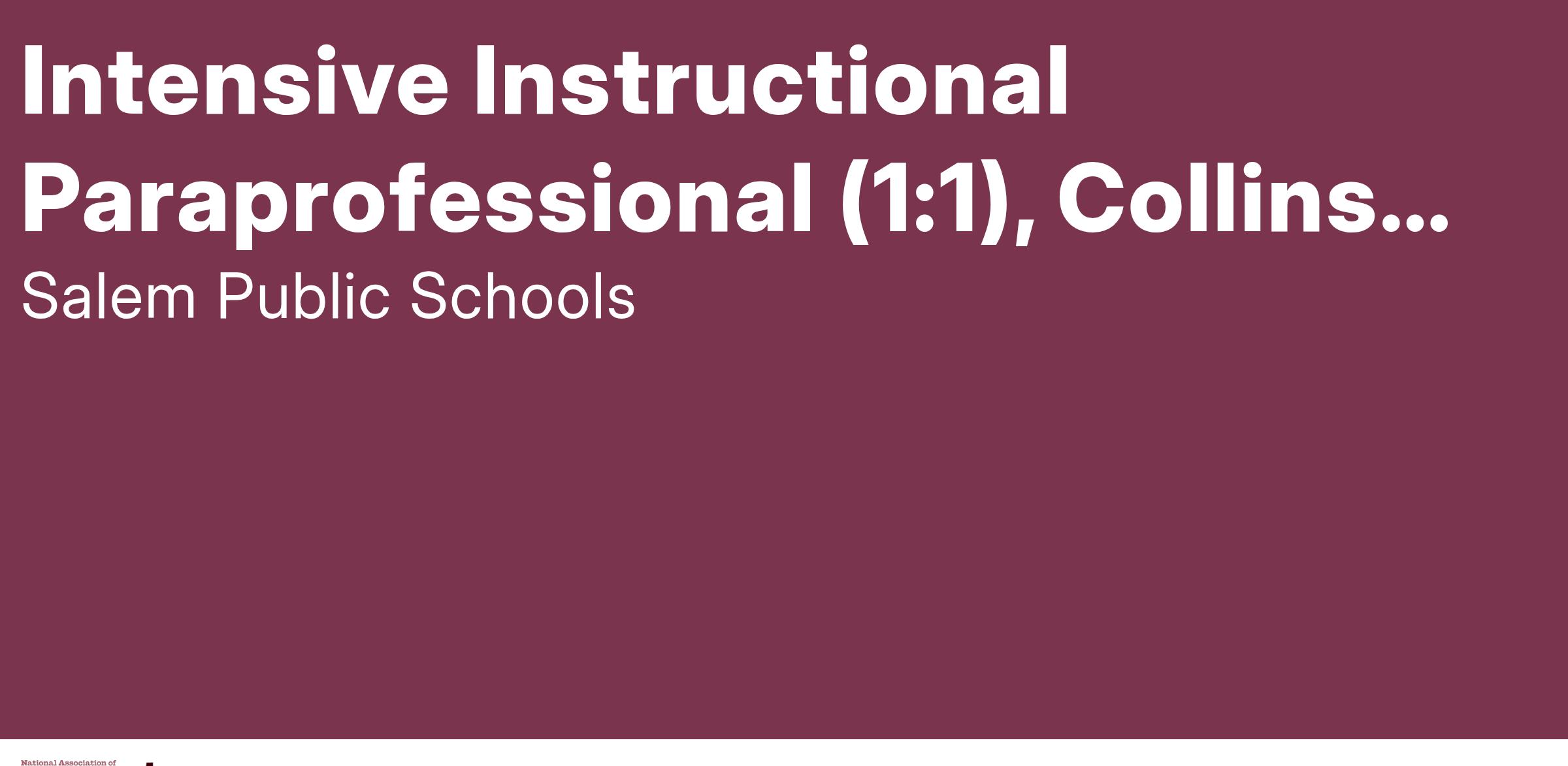 Intensive Instructional Paraprofessional (1:1), Collins Middle School, Salem Public Schools SY2025-2026