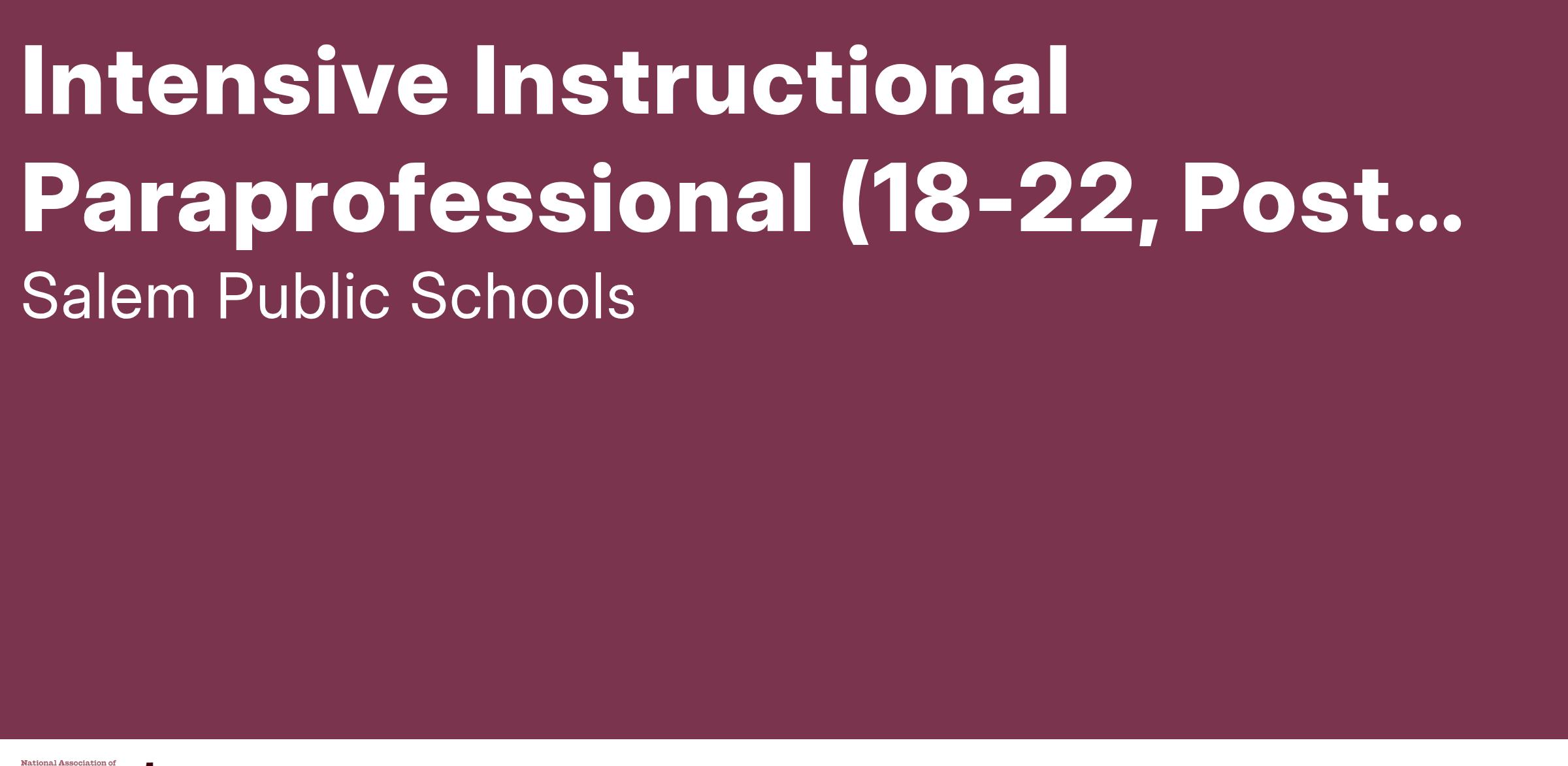 Intensive Instructional Paraprofessional (18-22, Post-High), Salem High School, Salem Public Schools SY2025-2026