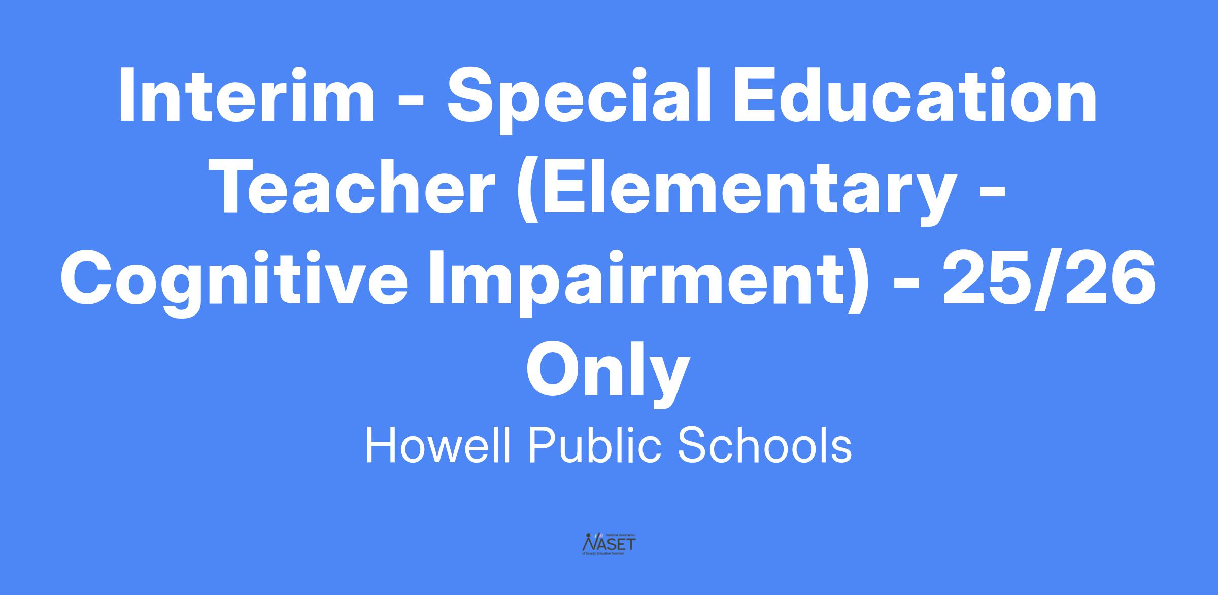 Job Title: Interim - Special Education Teacher (Elementary - Cognitive Impairment)