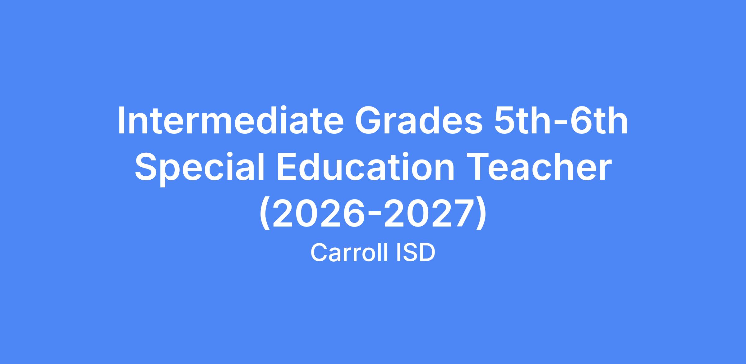 Intermediate Grades 5th-6th Special Education Teacher (2026-2027)