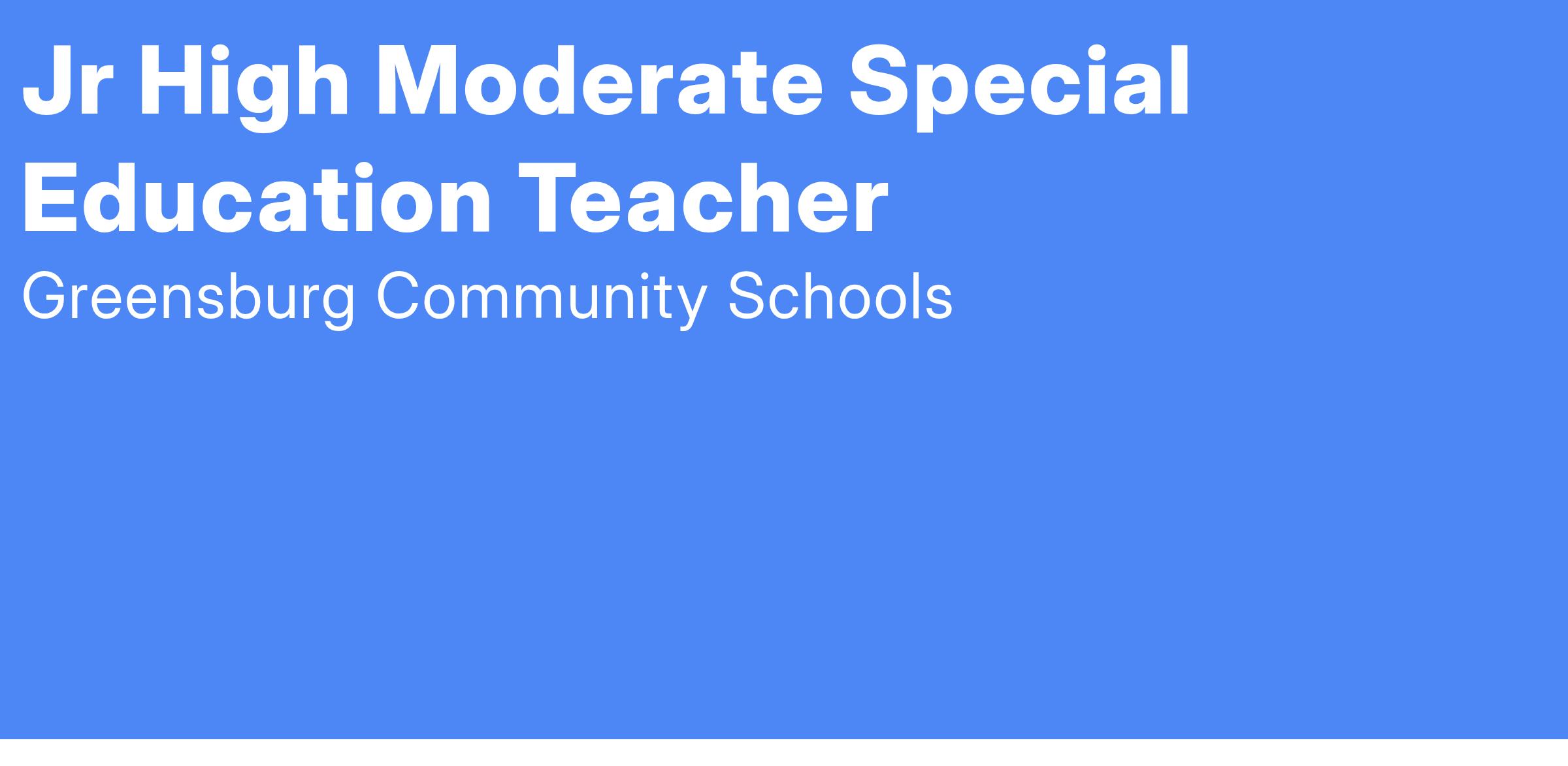 The position is for a full-time special education teacher at Greensburg Jr. High School beginning July 31, 2025. The Teacher of Record will provide academic, behavioral, and functional life skills support for students with disabilities. The teacher will conduct case conference meetings, plan lessons, collaborate with peers, and ensure compliance with all IEPs.