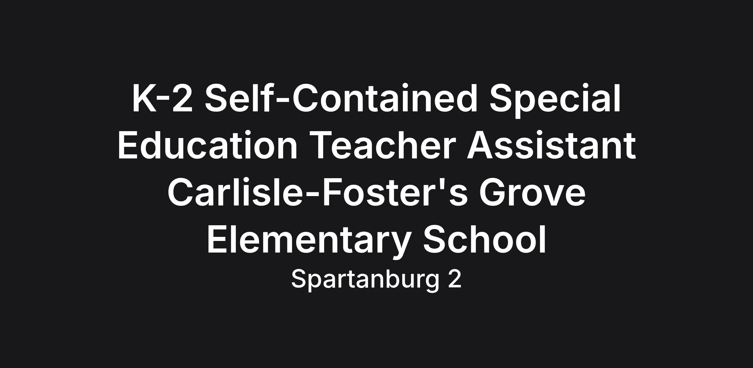Title: K-2 Self-Contained Special Education Teacher Assistant