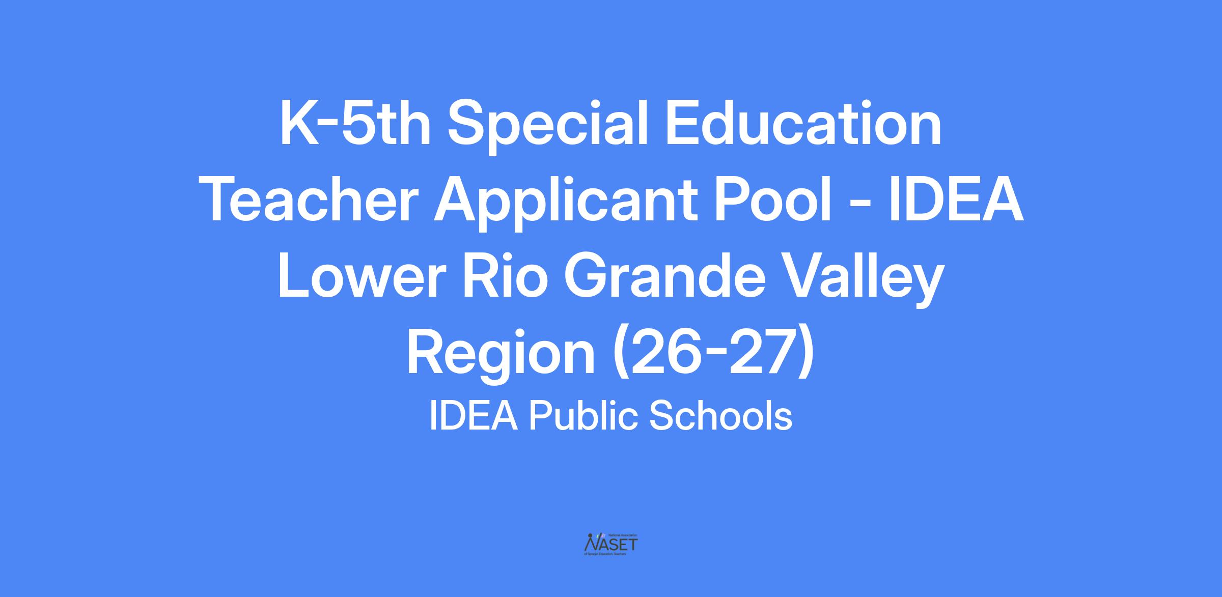 K-5th Special Education Teacher Applicant Pool - IDEA Lower Rio Grande Valley Region (26-27)