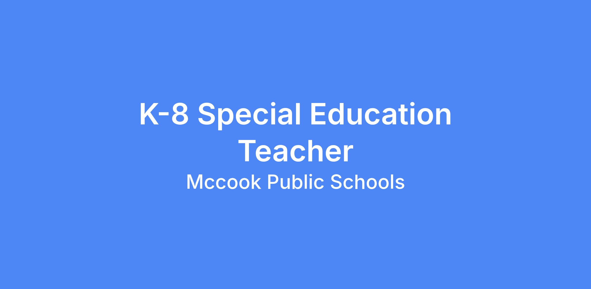 McCook Public Schools is accepting applications for a K-8 Special Education Teacher starting the 2026-2027 school year.