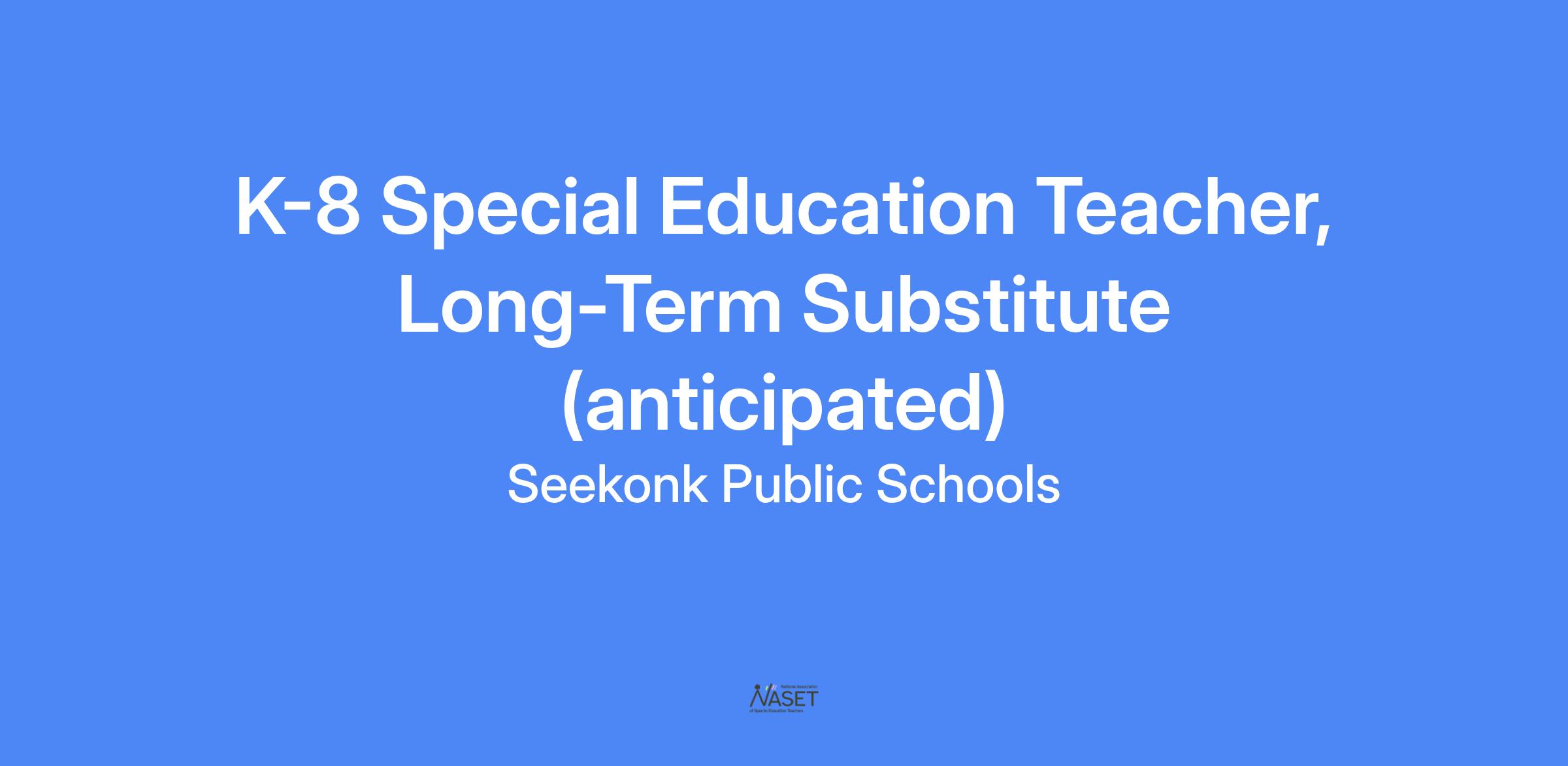 TYPE OF POSITION: Anticipated Long-Term Substitute, Full-time (1.0); 2025-2026 school year