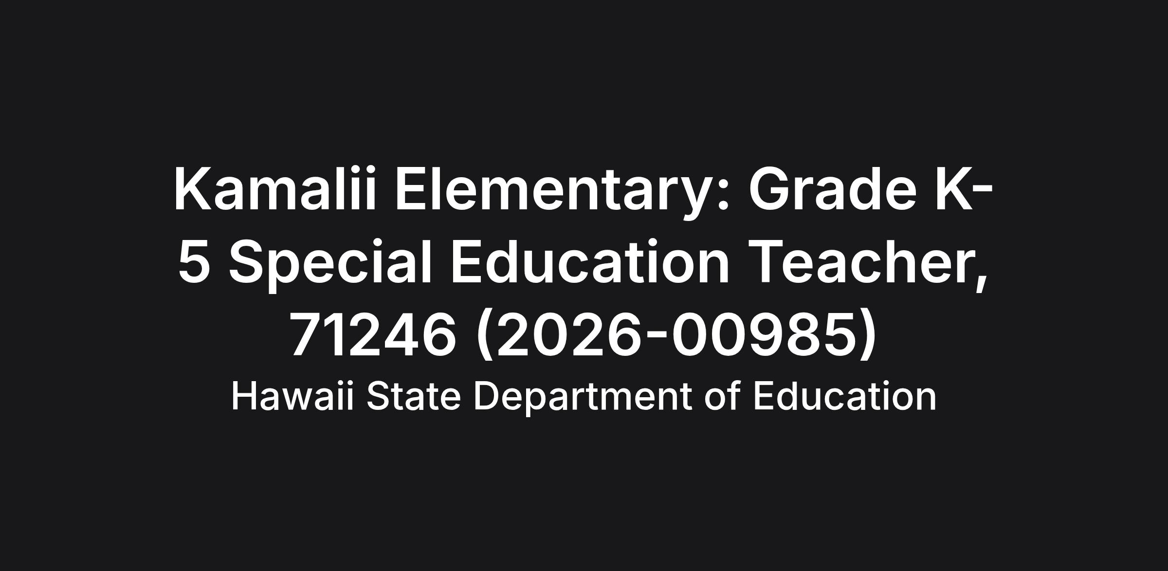 Preferred Qualifications: Valid Special Education license from the Hawaii Teacher Standards Board.