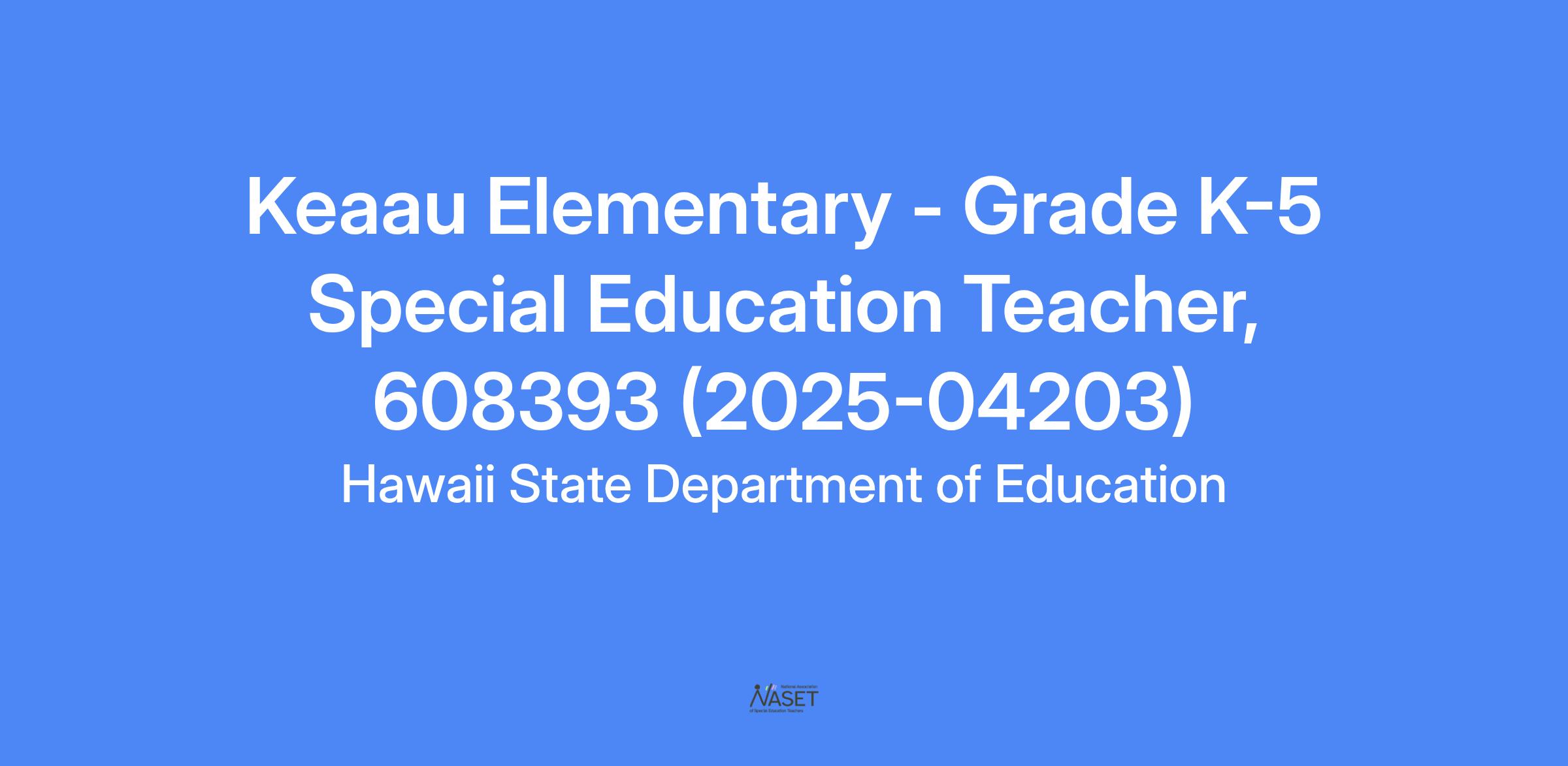 Keaau Elementary - Grade K-5 Special Education Teacher, 608393 (2025-04203)