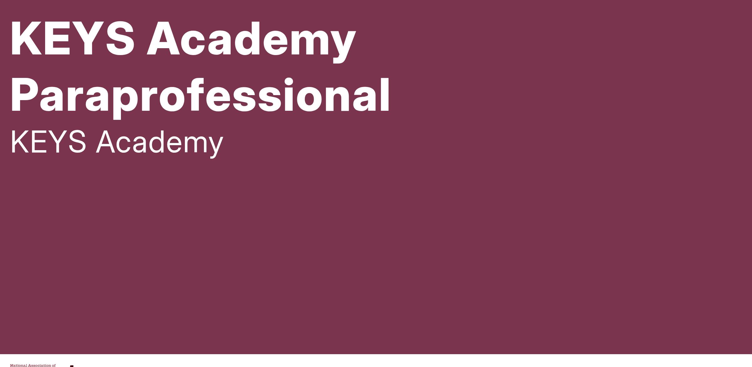 The KEYS Academy Paraprofessional assists in managing student behavior in the school setting and during off-site school activities and provides academic, emotional and behavioral support to students in the classroom to assist classroom teacher in maximizing instructional time and minimizing disruptions. The KEYS Academy Paraprofessional serves students using creativity, resourcefulness, preparedness, knowledge and skills and supports a classroom climate centered around the students that promotes dignity and respect. The KEYS Academy Paraprofessional performs all duties in a manner that supports a sense of well-being, availability for learning and safety, dignity and direction for all.