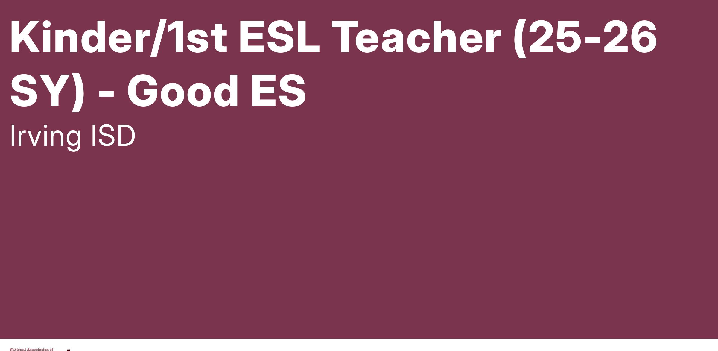 Kinder/1st ESL Teacher (25-26 SY) - Good ES