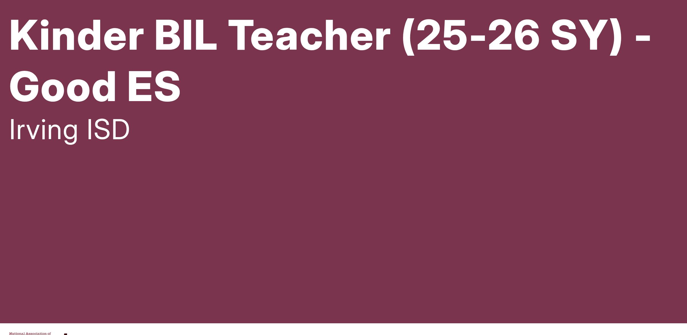 Kinder BIL Teacher (25-26 SY) - Good ES