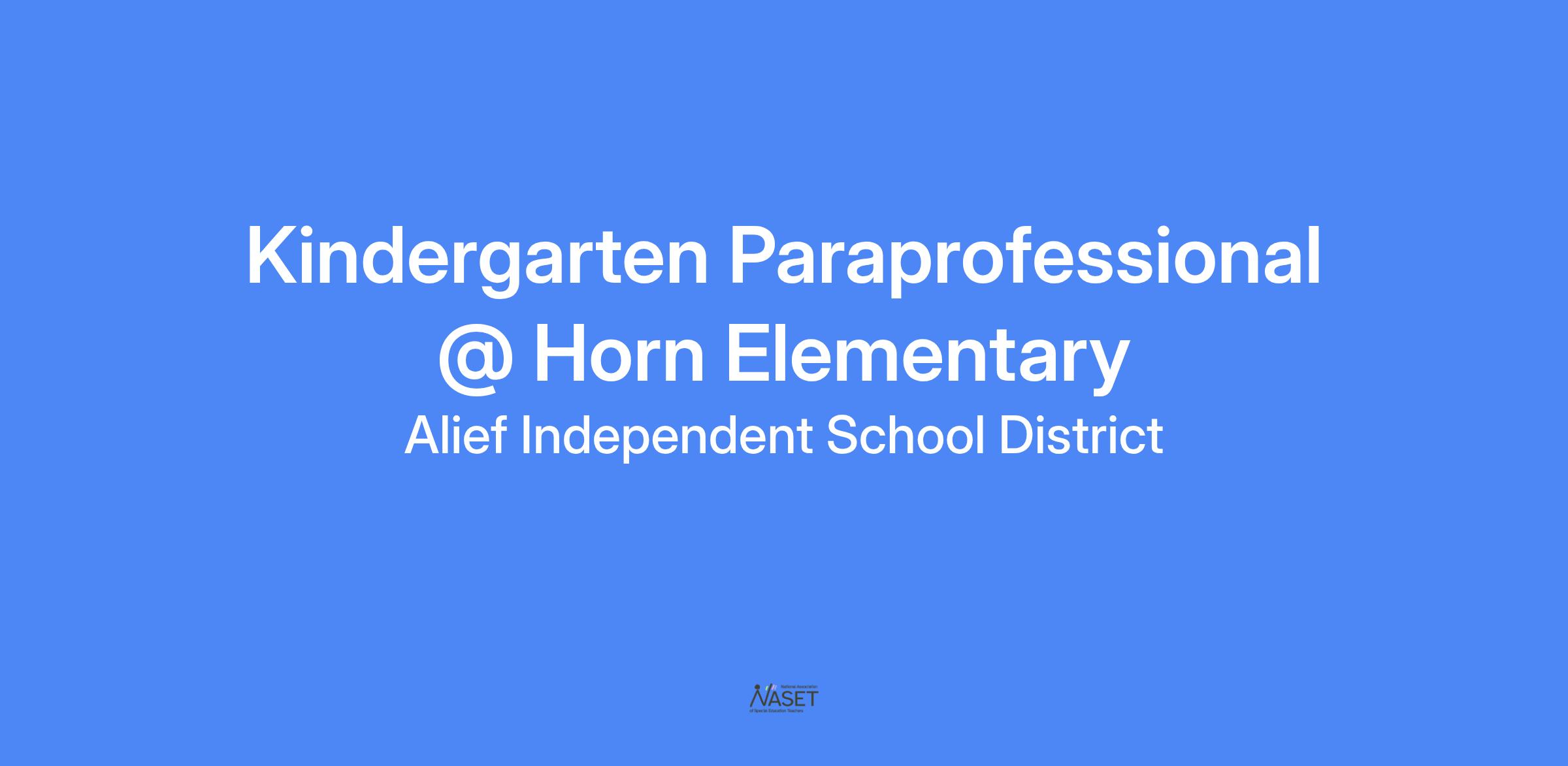 Kindergarten Paraprofessional @ Horn Elementary