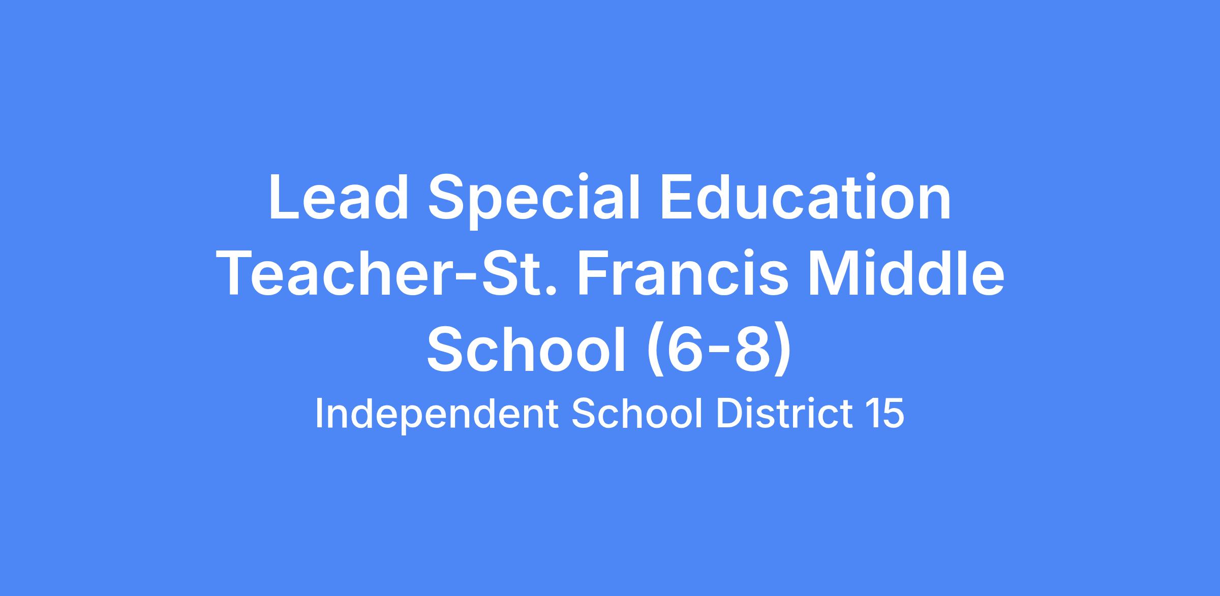 Type of Employment Available: Lead Special Education Teacher