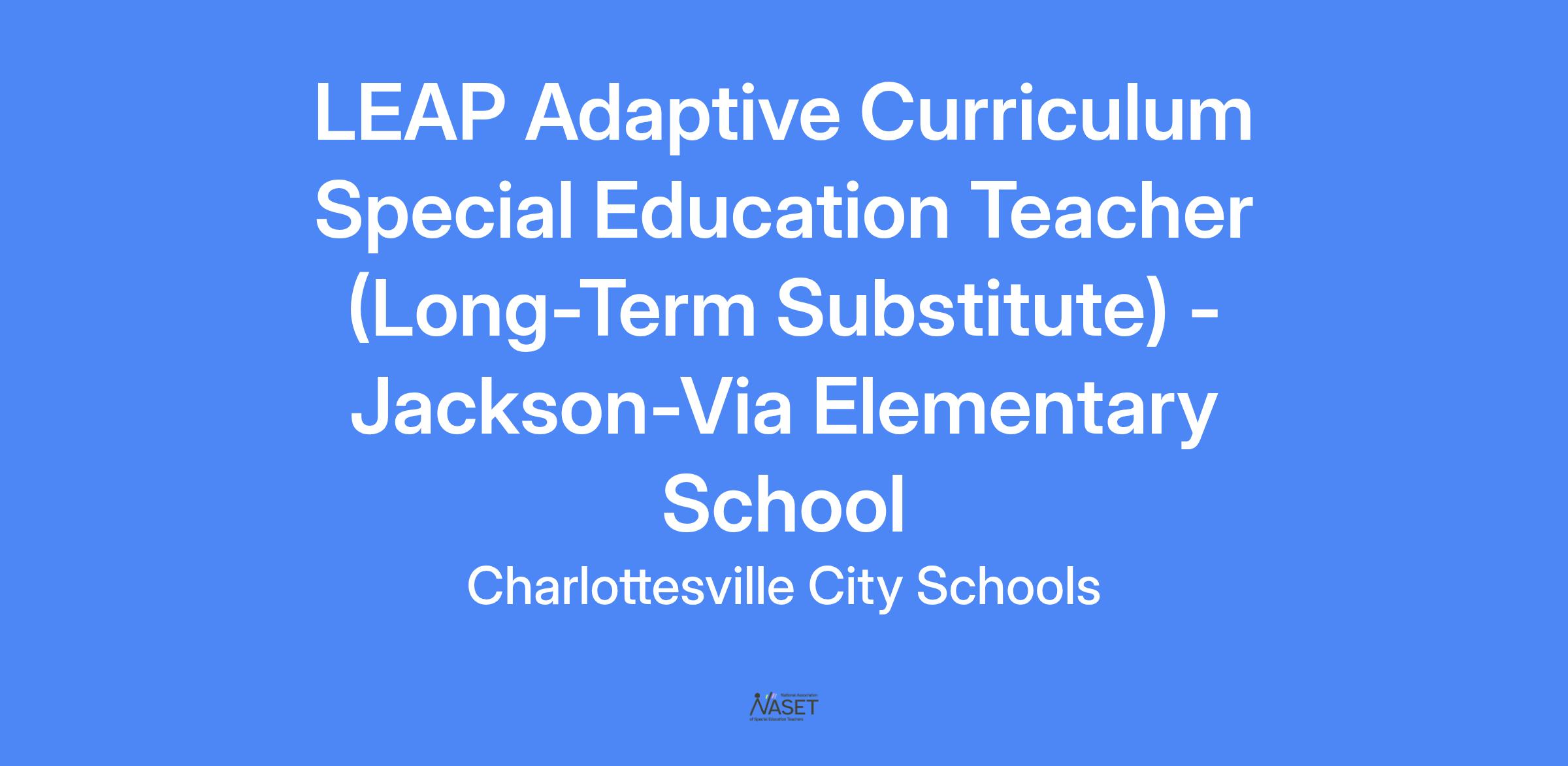 LEAP Adaptive Curriculum Special Education Teacher (Long-Term Substitute)
