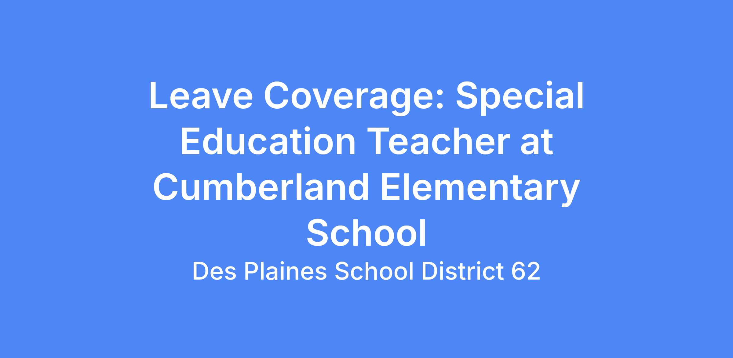 Community Consolidated School District 62 in Des Plaines, Illinois is seeking a Special Education Teacher to cover a leave of absence at Cumberland Elementary School from March 6 through the end of the school year.