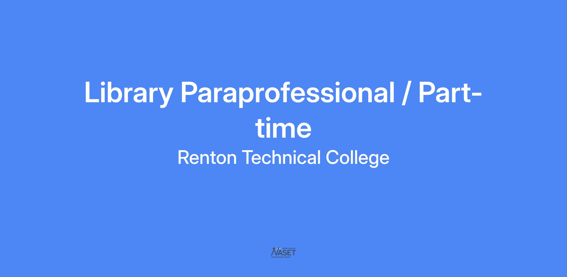 Join our team at Renton Technical College! We are seeking a part-time Library Paraprofessional to support our Library team. This position will be responsible for performing a variety of library functions, primarily assisting patrons at the main circulation/information desk and performing routine clerical tasks in support of library operations.