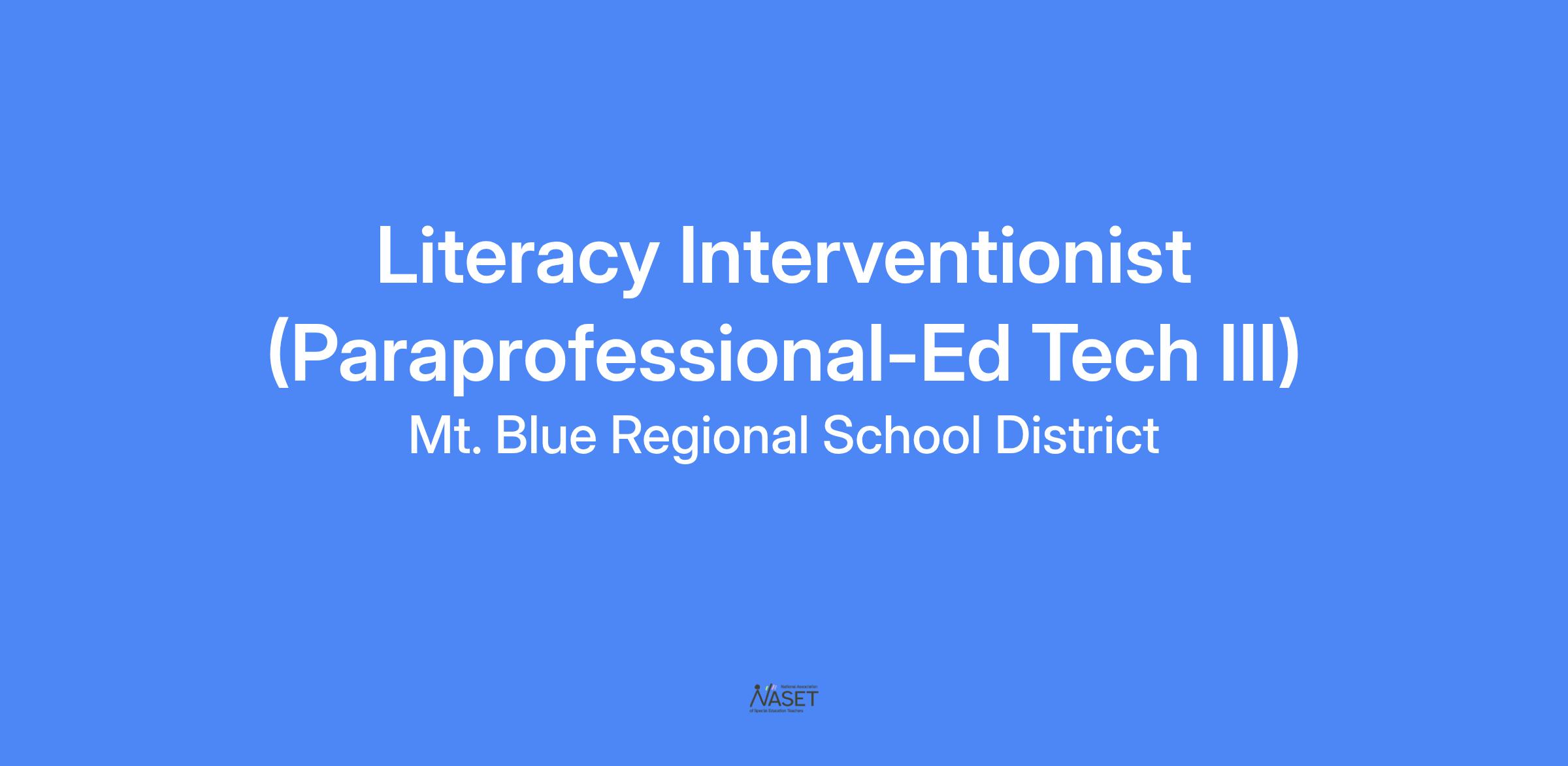Literacy Interventionist (Paraprofessional-Ed Tech III)