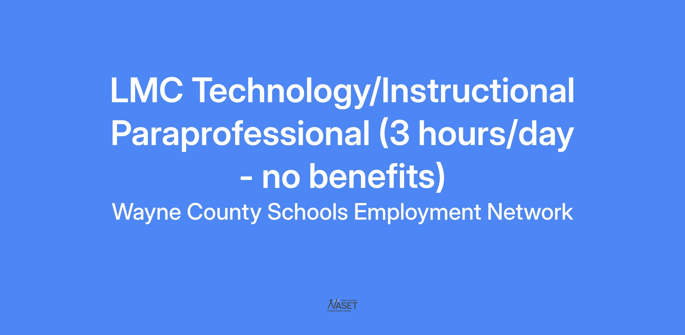 LMC Technology/Instructional Paraprofessional (3 hours/day - no benefits)