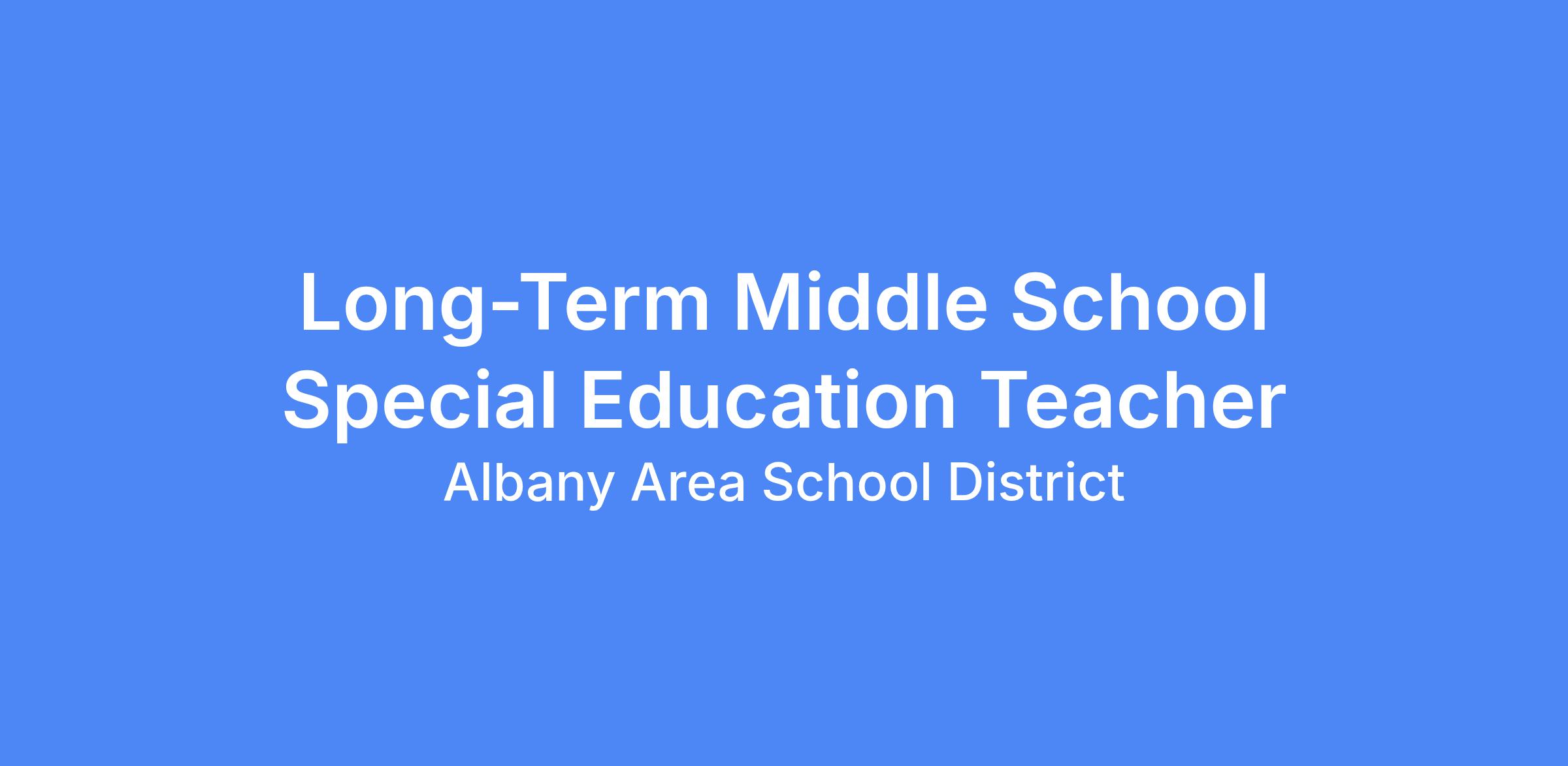 We are seeking a compassionate, flexible, and dedicated Long-Term Middle School Special Education Teacher to join our team at Albany Elementary. This position will provide continuity of instruction and support for students with diverse learning needs during a staff absence. The ideal candidate will create a structured, supportive, and inclusive classroom environment that promotes academic progress, social-emotional development, and student independence. The teacher will implement existing plans while maintaining consistency in services and expectations for students.