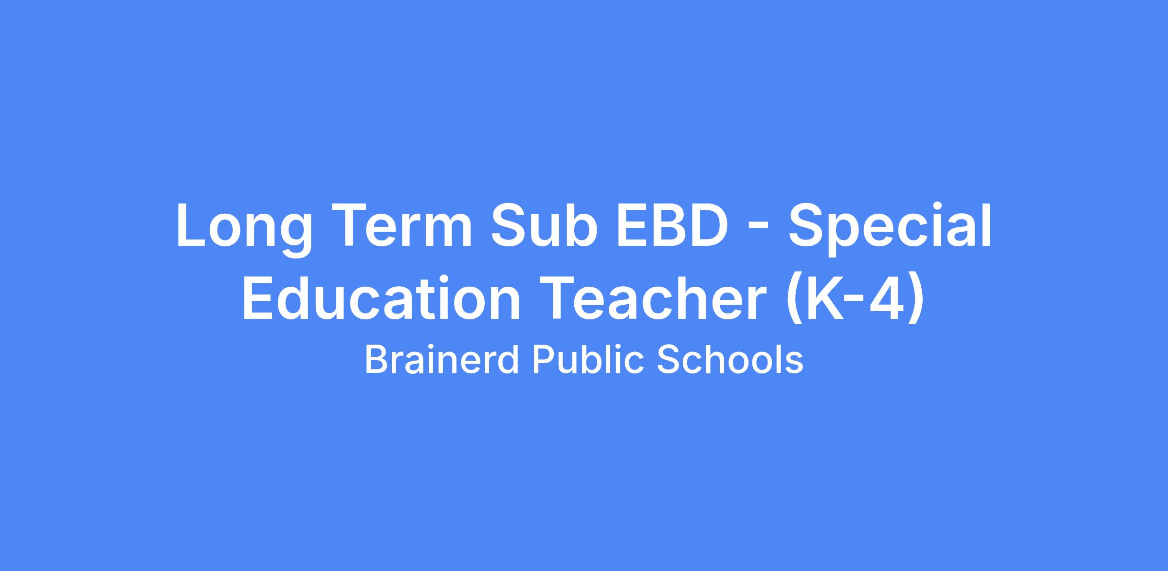 Position Title: Long Term Substitute Special Education Teacher - EBD (K-4)