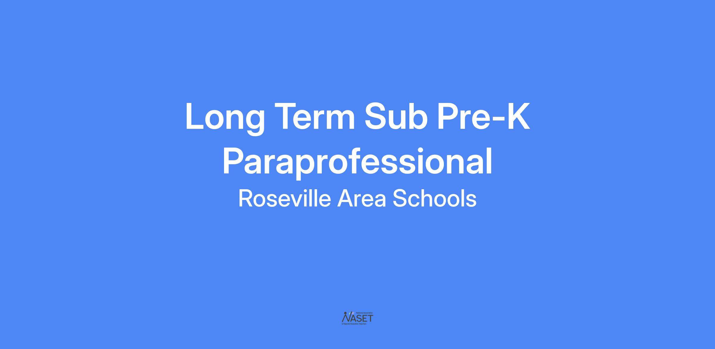 Description: Roseville Area Schools Pre-K Program is seeking applicants for a long term sub paraprofessional. The position includes assisting the teacher and providing support and supervision to young children in a Pre-K classroom. The position is 28.75 hours per week, Monday - Friday, 11:00am - 4:45pm from December 8, 2025 - March 20, 2026.