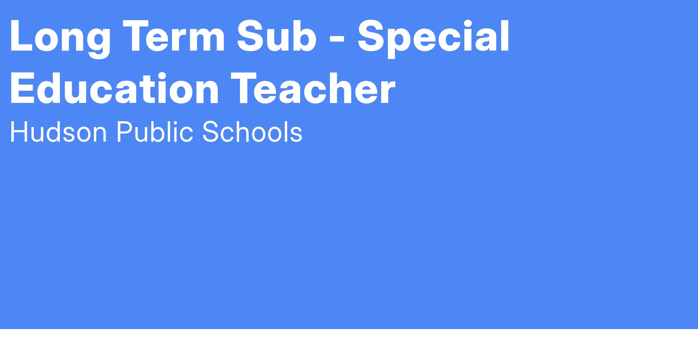 Hudson Public Schools is seeking a long term sub for a special education teacher at Farley Elementray School with approximate dates starting in September 2025 for 8 weeks.