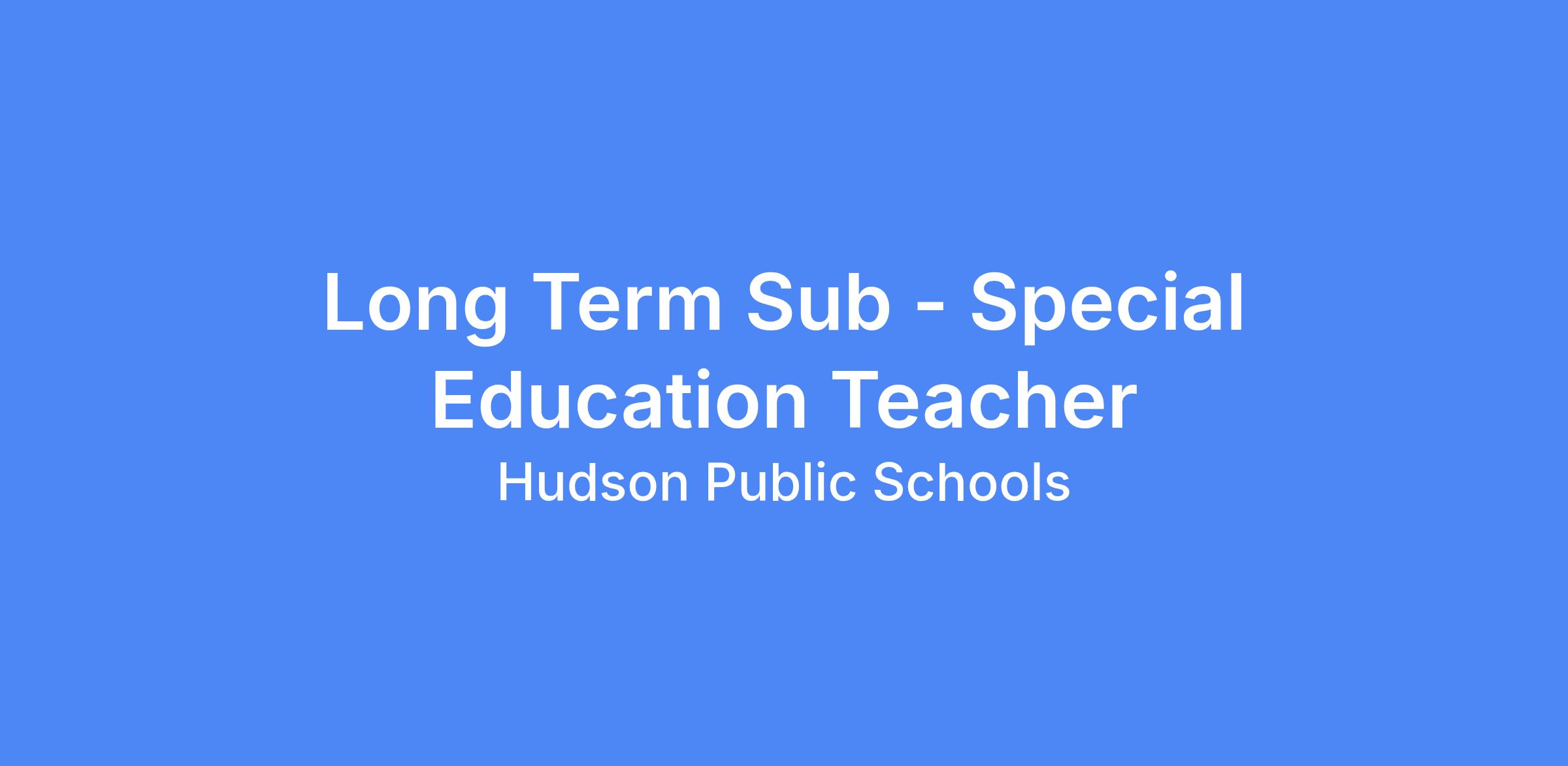 Hudson Public Schools is seeking a long term sub for a Special Education Teacher at Quinn Middle school with approximate dates of April 13, 2026 through the remainder of the 2025-2026 School year (approx June 17, 2026)