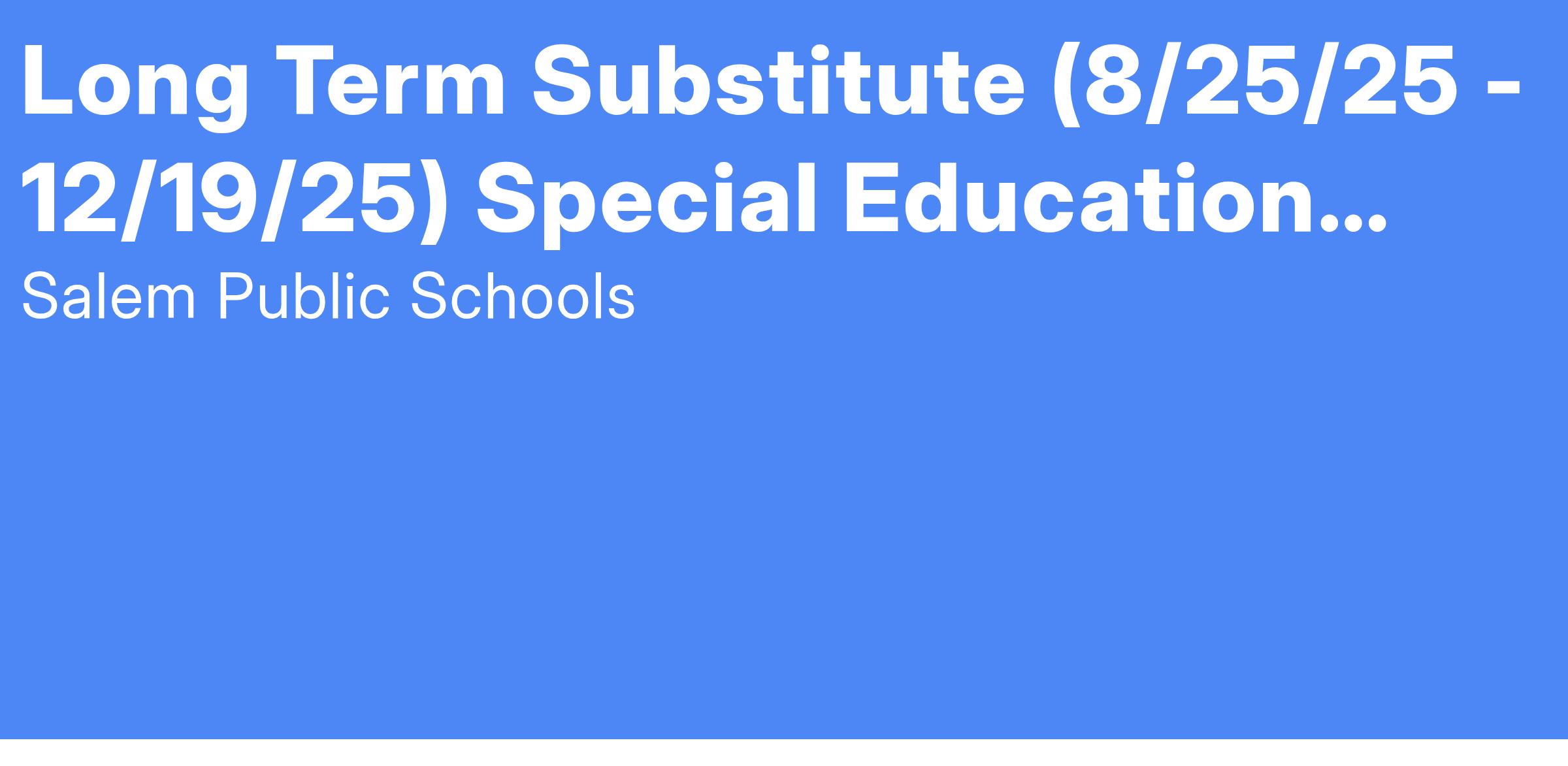 Long Term Substitute (8/25/25 - 12/19/25) Special Education Teacher (Learning Skills), Carlton Innovation School, Salem Public Schools (Salem, MA), SY 2025-2026
