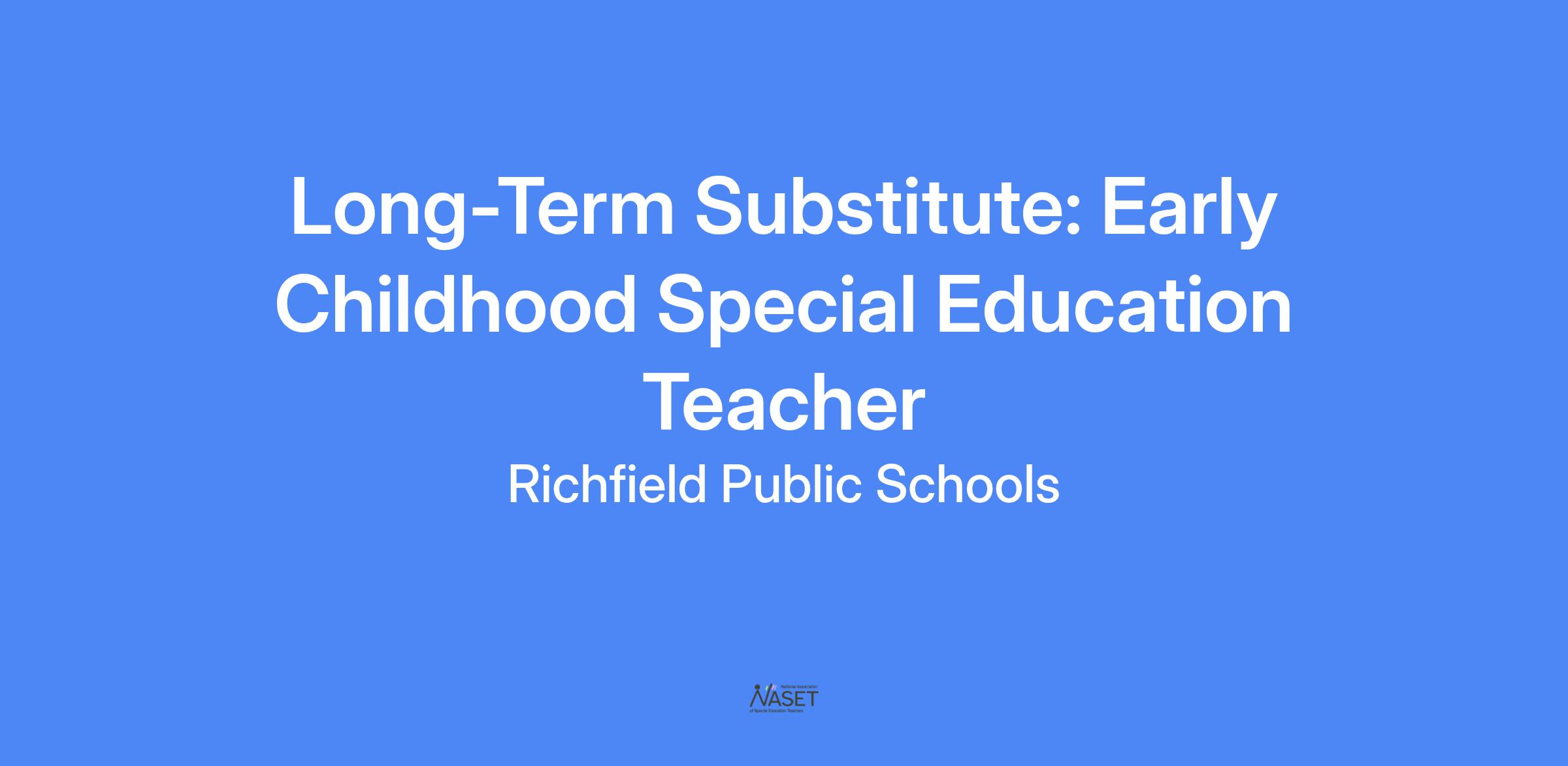 The Richfield Public School District is now accepting applications for a Long-Term Substitute: Early Childhood Special Education Teacher at Central Education Center, starting January 2026 through April 2026.