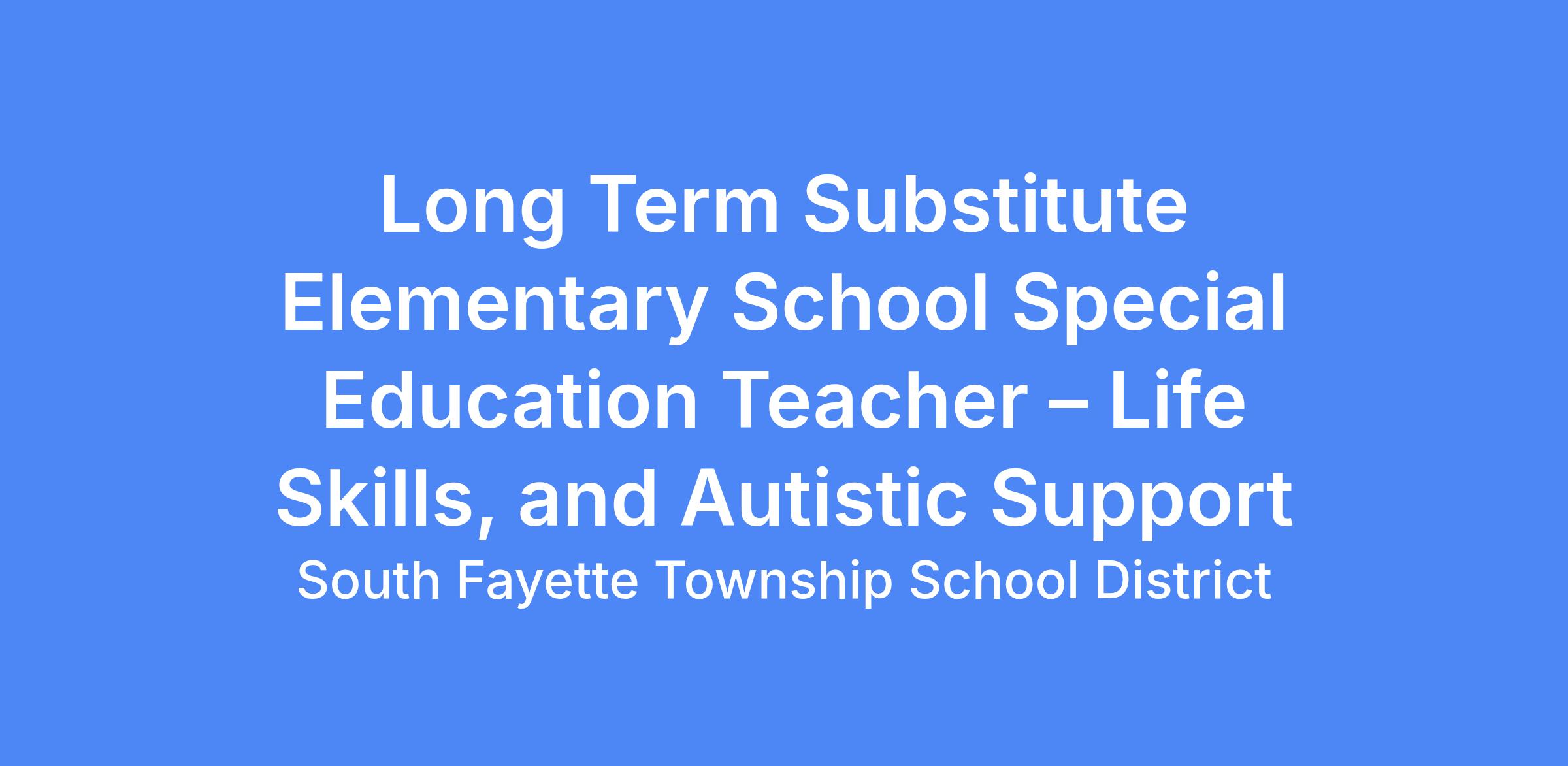 TITLE: Long Term Substitute Elementary School Special Education Teacher – Life Skills, and Autistic Support