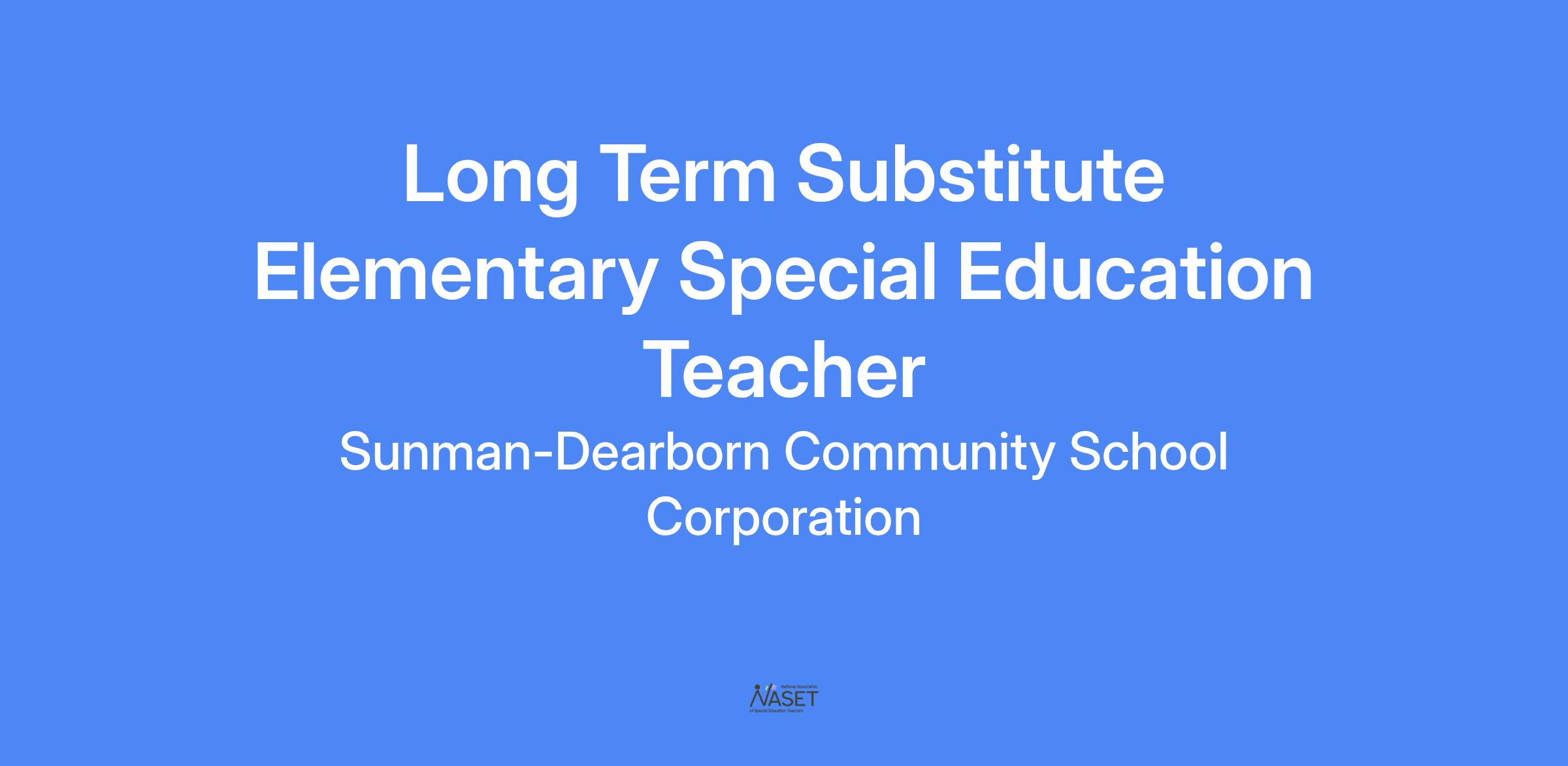 Long Term Substitute Elementary Special Education Teacher - Mild Intervention
