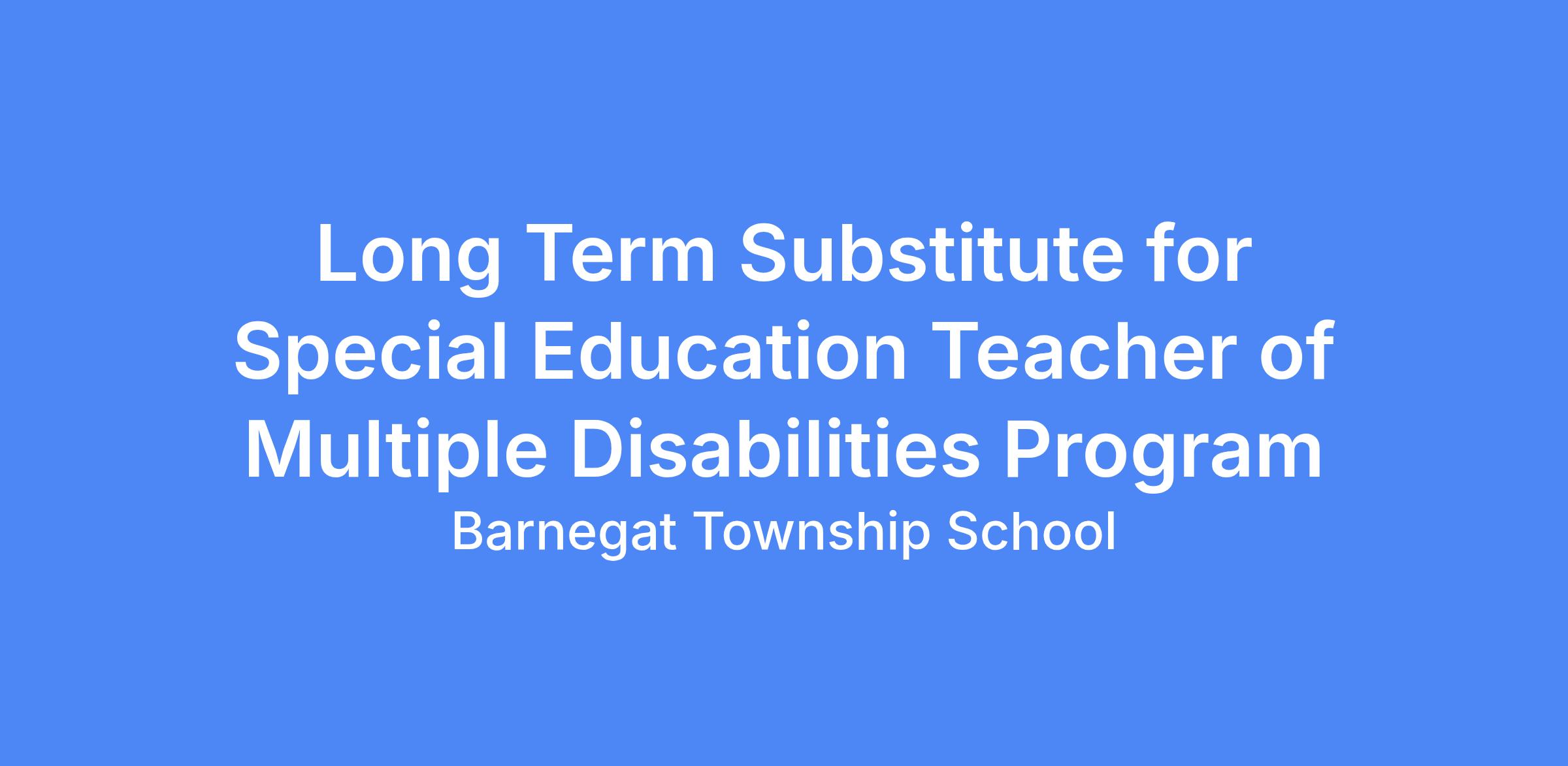 Long Term Substitute for Special Education Teacher of Multiple Disabilities Program