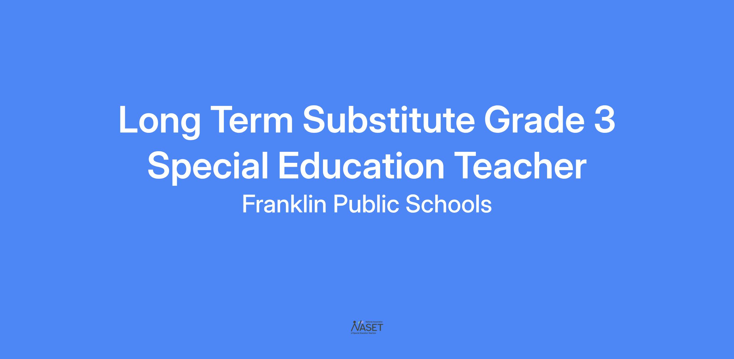 The Franklin Public Schools, a Prek-12 district, is seeking a skilled and experienced Long Term Substitute Special Education Teacher to serve as a special educator at the Washington Street 3-5 Elementary School. The teacher will work in a model of service delivery offering academic support in the general education classrooms combined with specialized instruction for small groups and individuals on a pull out basis. Students requiring assistance and support have mild to moderate disabilities.