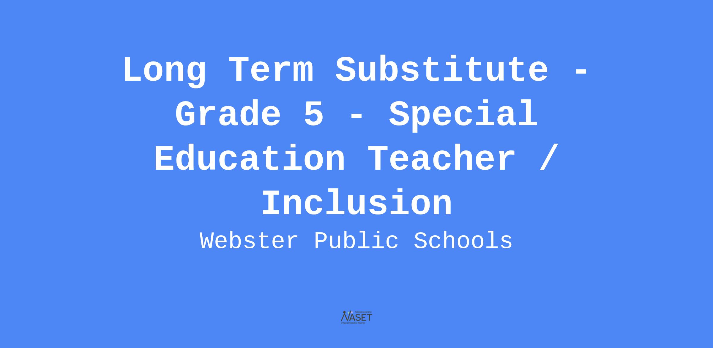 Webster Public Schools is seeking qualified candidates for the anticipated position of a Long Term Substitute Grade 5 Special Education Teacher / Inclusion at Webster Middle School. This LTS position will be from 8/25/25 to anticipated 03/02/26. PERFORMANCE RESPONSIBILITIES: 1. Plan and implement instruction to insure that all students meet and exceed Common Core Standards and State Frameworks 2. Use of data to inform instruction, to track student progress and to track progress of self through self-evaluation and goal setting 3. Deliver engaging, targeted instruction that meets MA DESE and Common Core Standards for level and subject taught 4. Differentiate services and instruction to meet variety of student learning needs and strengths 5. Maintain active communication with students’ families in support of their learning and to communicate with families consistently and regularly throughout the school year about their children’s academic and social progress 6. Assess student performance using formal, summative, and portfolio assessments to drive instruction 7. Perform other duties as assigned by the principal