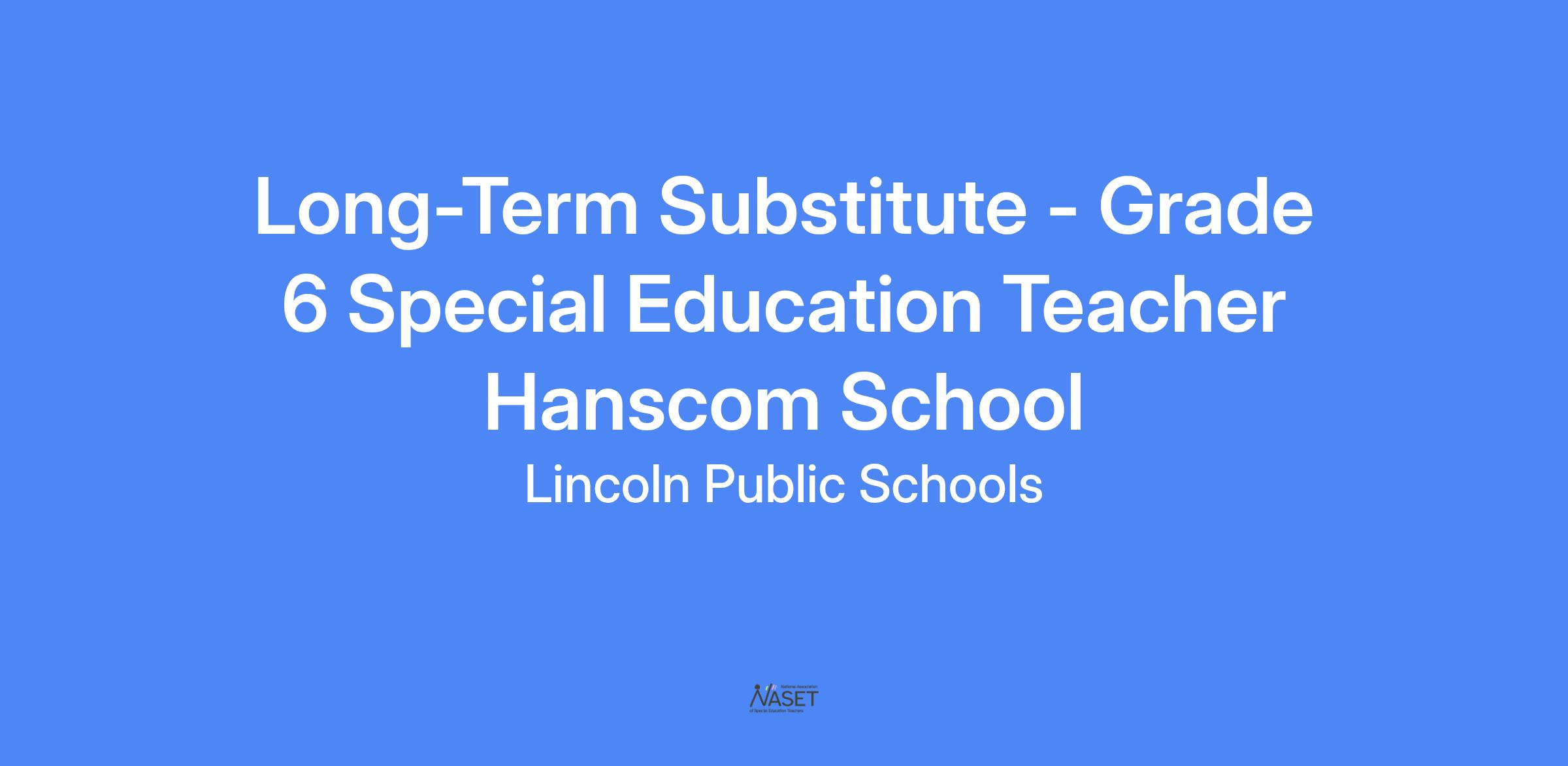 Long-term Substitute - Grade 6 Special Education Teacher - Hanscom School
