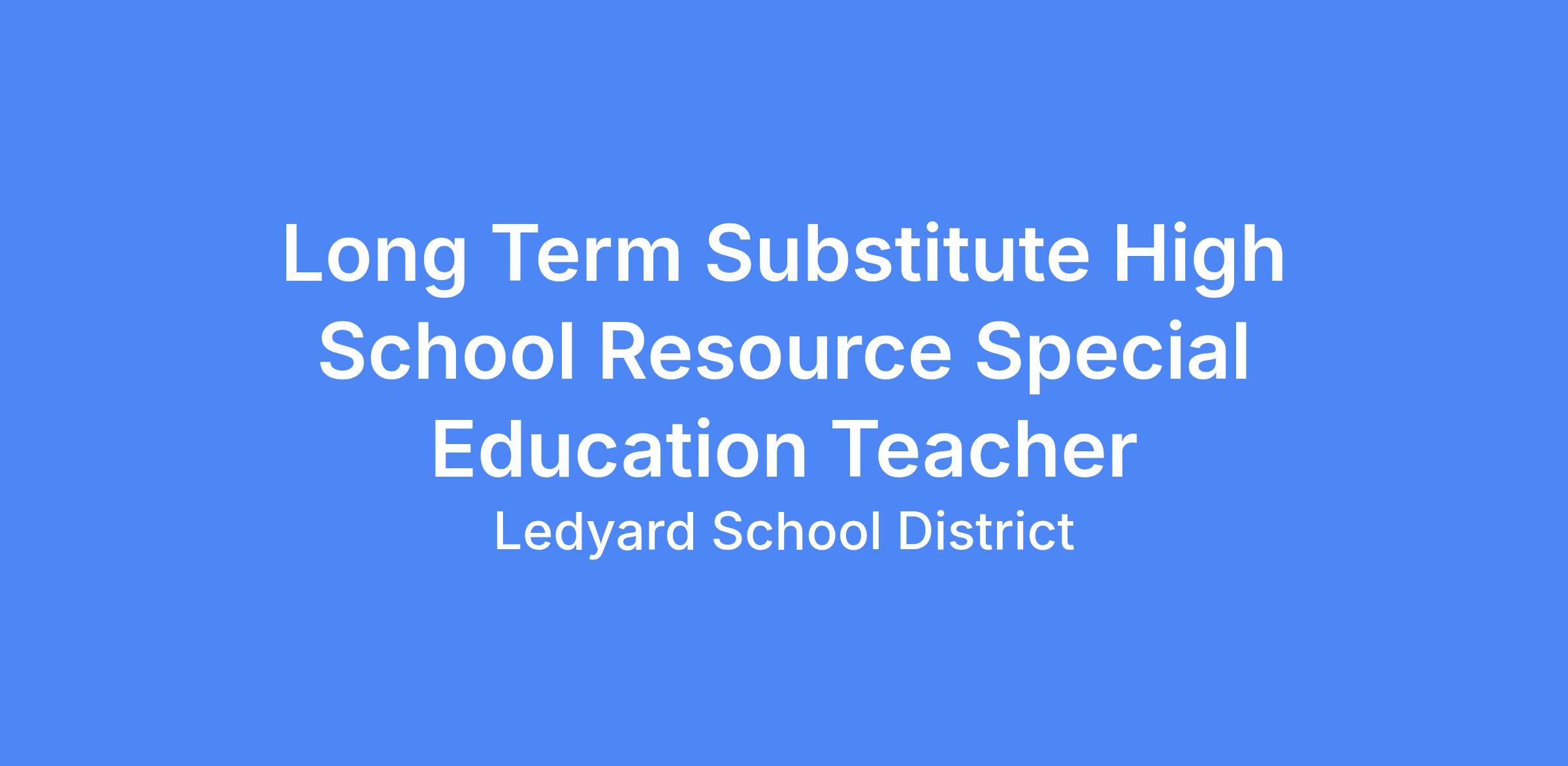 Ledyard Public Schools is seeking a Long Term Substitute -High School Resource Special Education Teacher anticipated through the end of the school year (based on the needs of the district) to work with students in the Resource Room setting. The successful candidate will have knowledge and experience working with a range of learning differences using strategies to support students within the general education setting.
