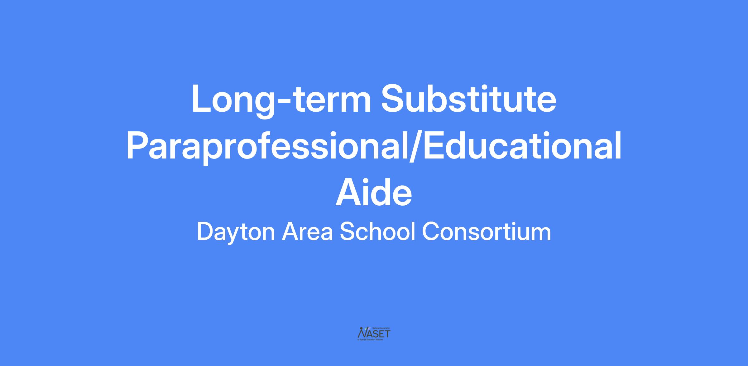 Brookville Local Schools Brookville Intermediate School is seeking a Long-term Substitute Paraprofessional/Educational Aide in a self contained special needs classroom for approximately 6 weeks.