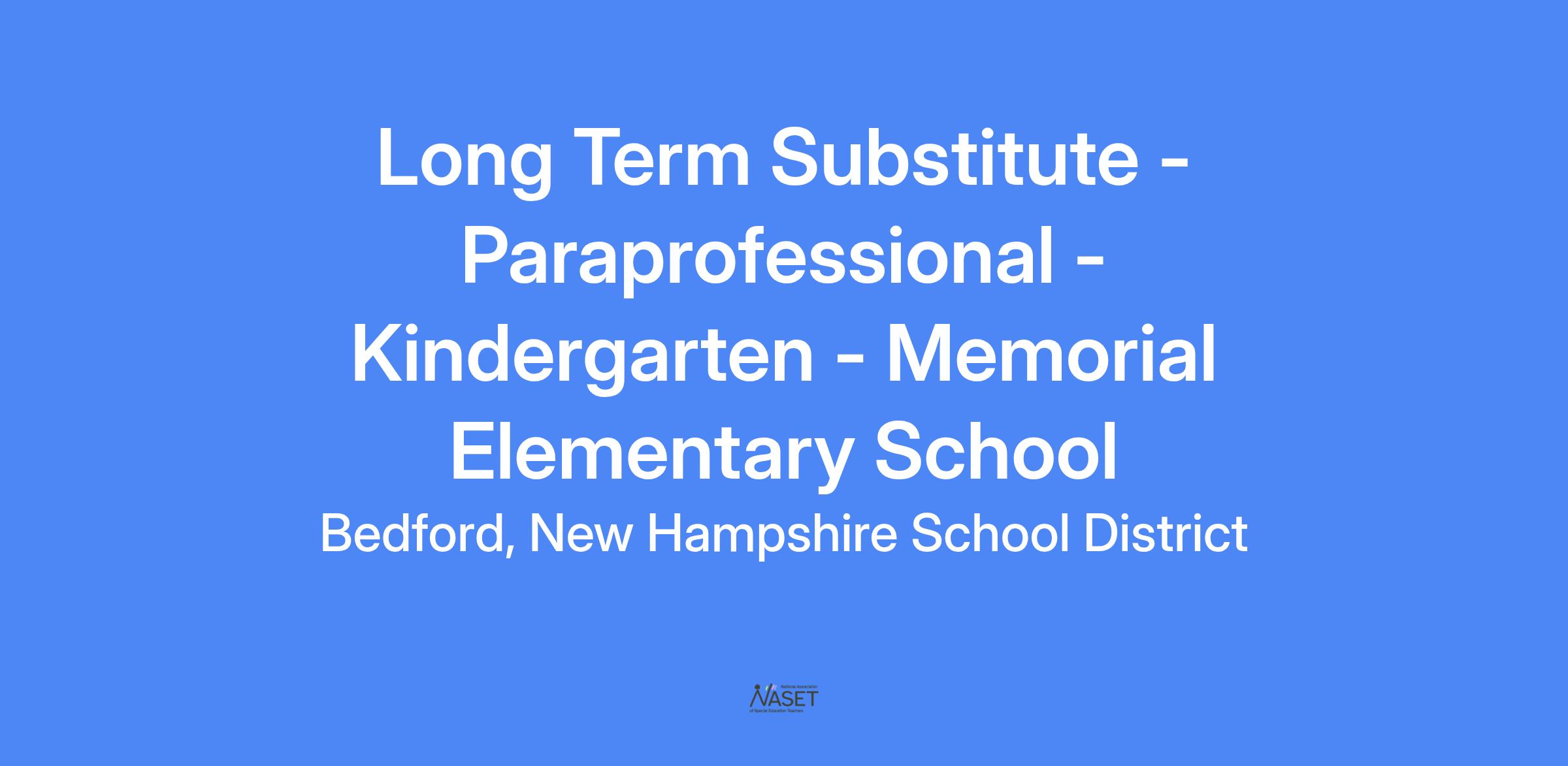 Description: Long Term Substitute - Paraprofessional - Kindergarten position. Monday-Friday, 6.5 hours/day. The position is available immediately and will continue through to March 2026.