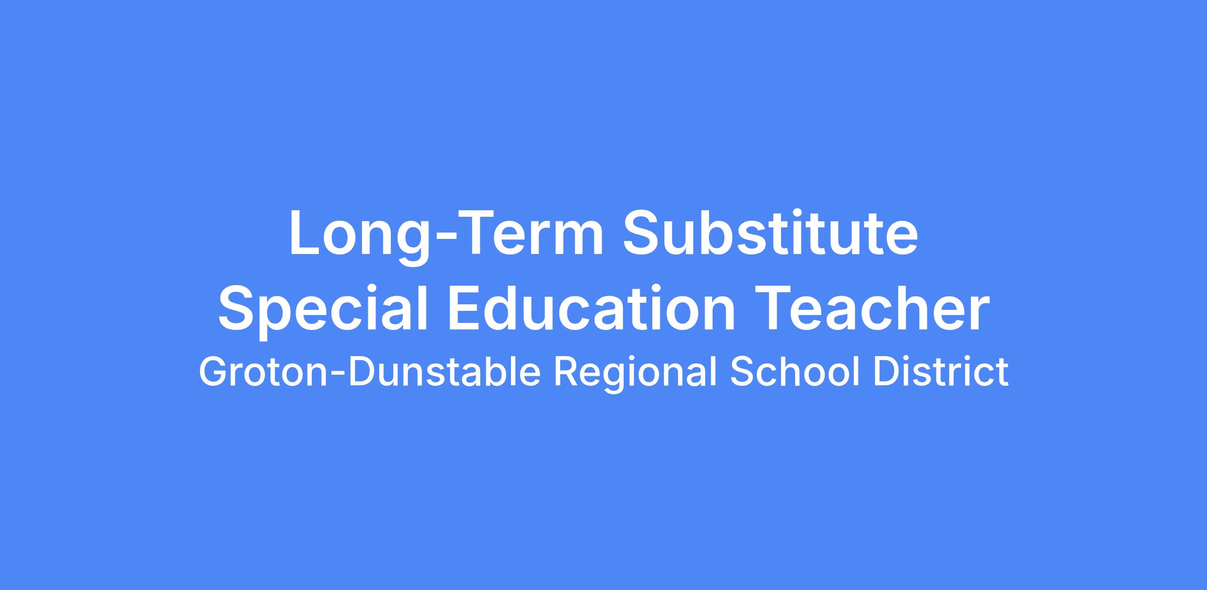 The Groton-Dunstable Regional School District is looking for a Long-term Special Education Teacher to cover an elementary school vacancy starting immediately through April 17, 2026. A knowledge of writing IEPs and Progress Reports a must.