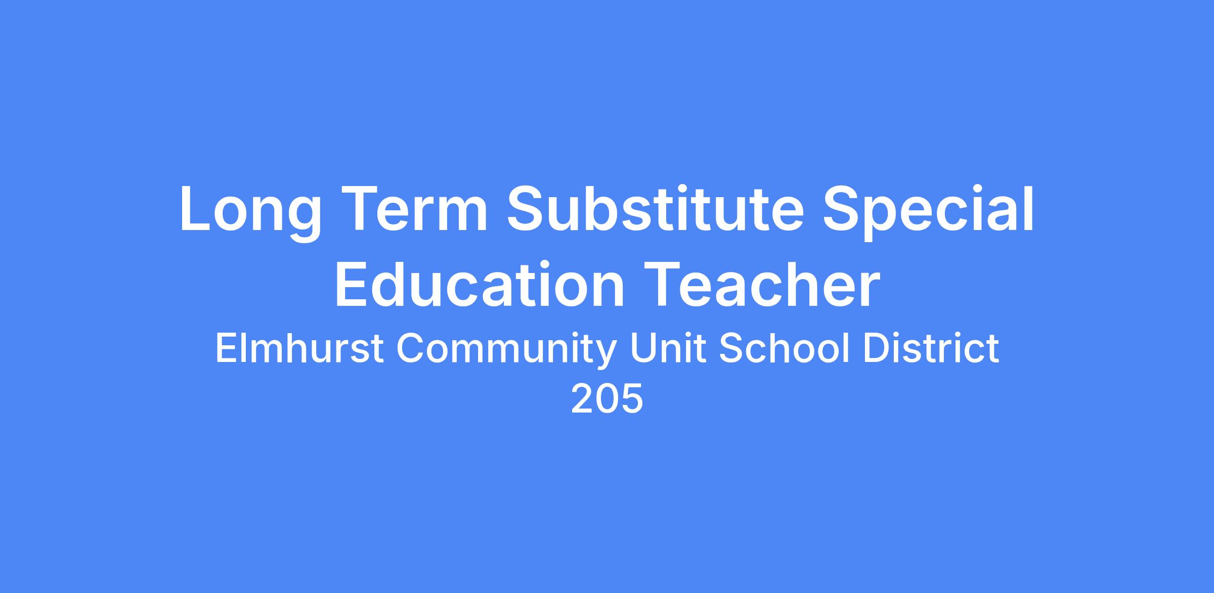 Long Term Substitute Special Education Teacher High School