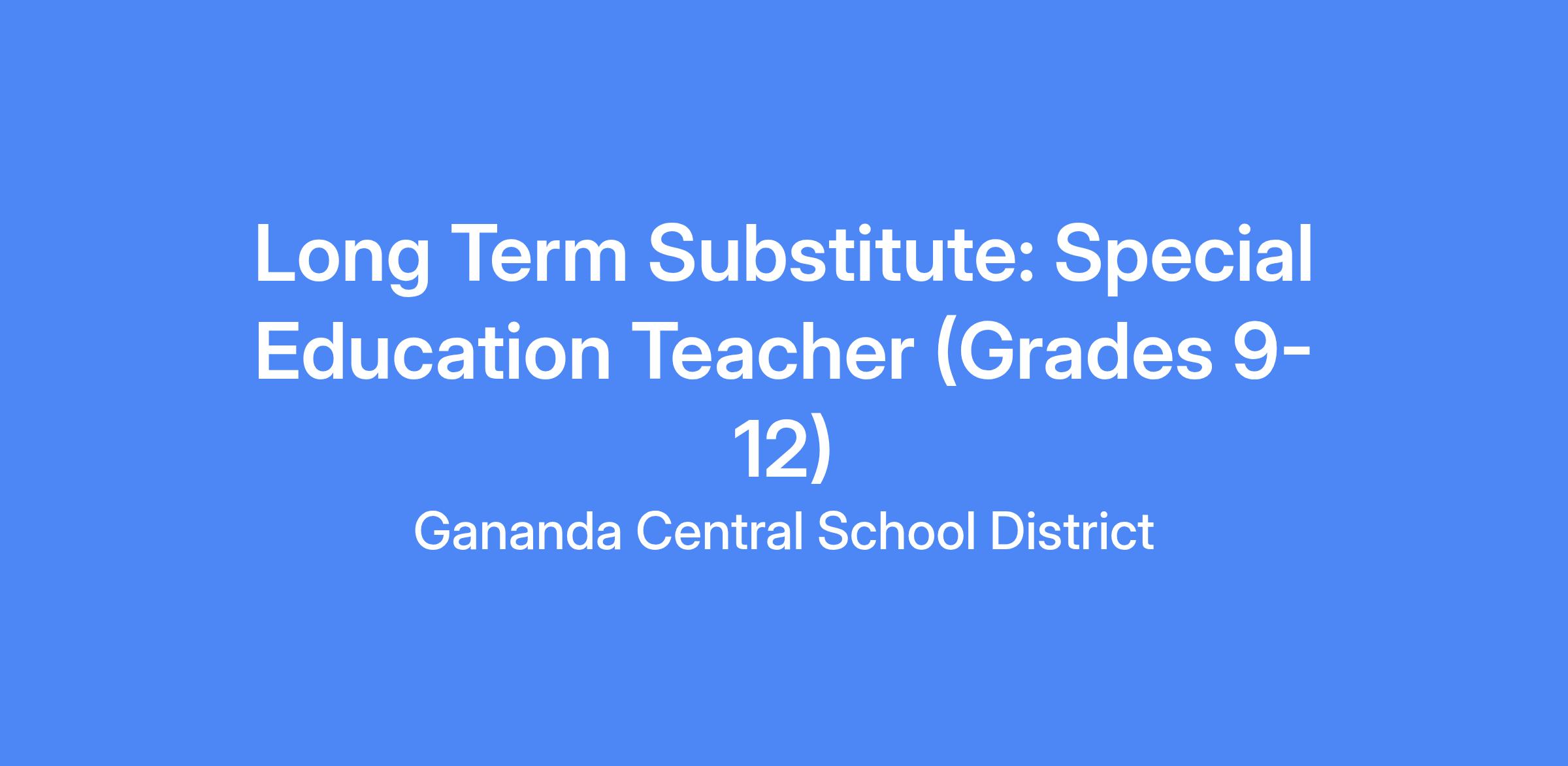 Position: Long Term Substitute, Special Education,