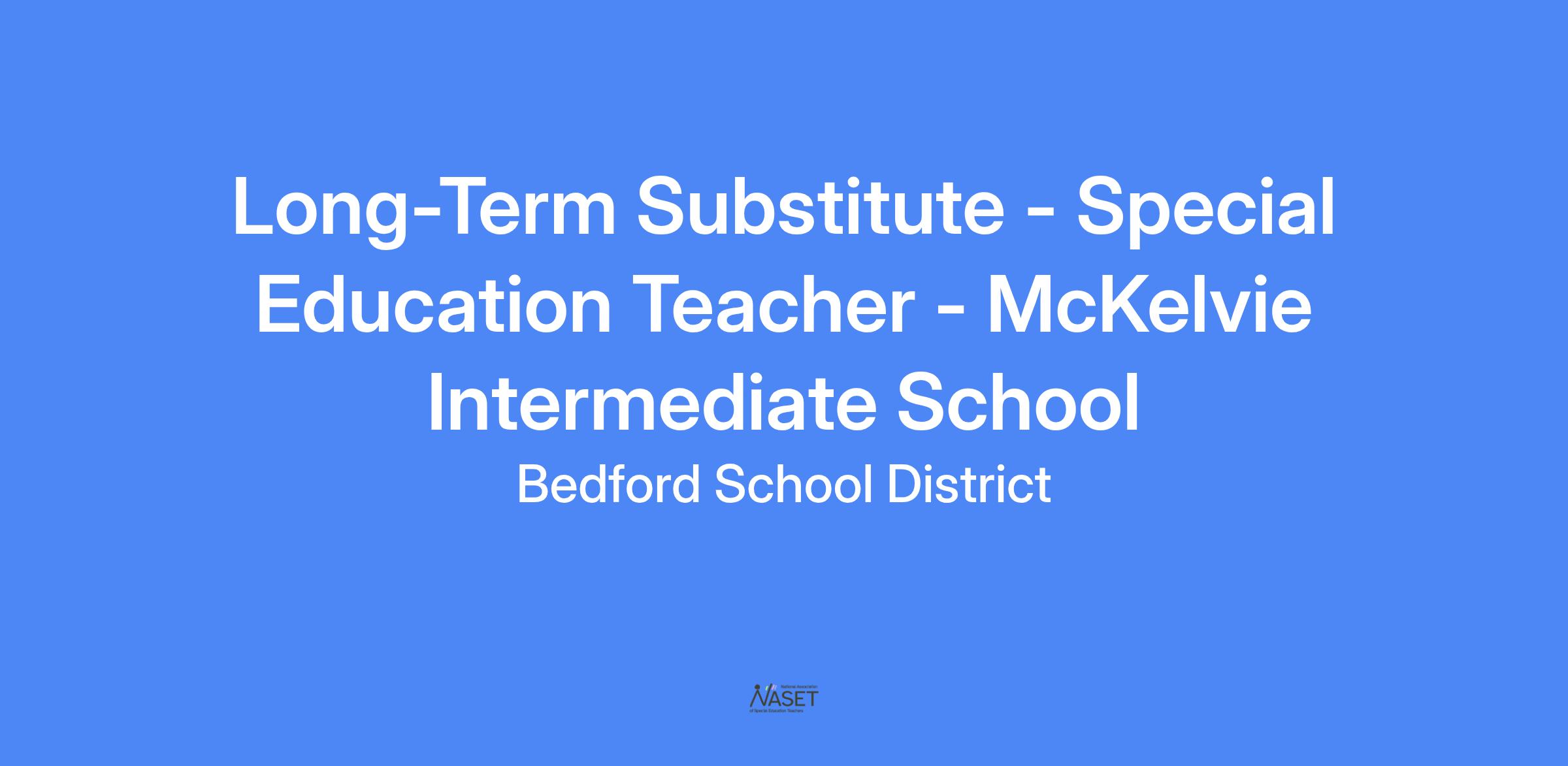 Long Term Substitute Special Education Teacher - McKelvie Intermediate School. Assignment beginning immediately until at least mid-December.
