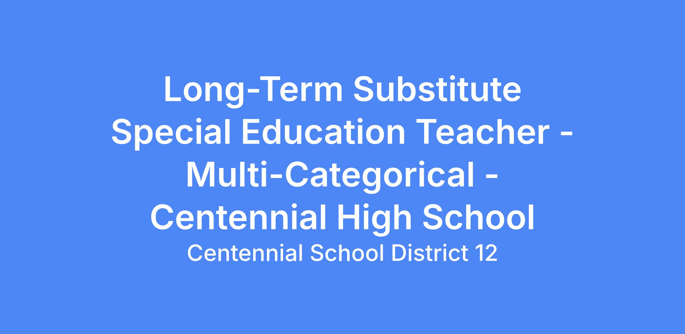 Position: Long-Term Substitute Special Education Teacher - Multi-Categorical