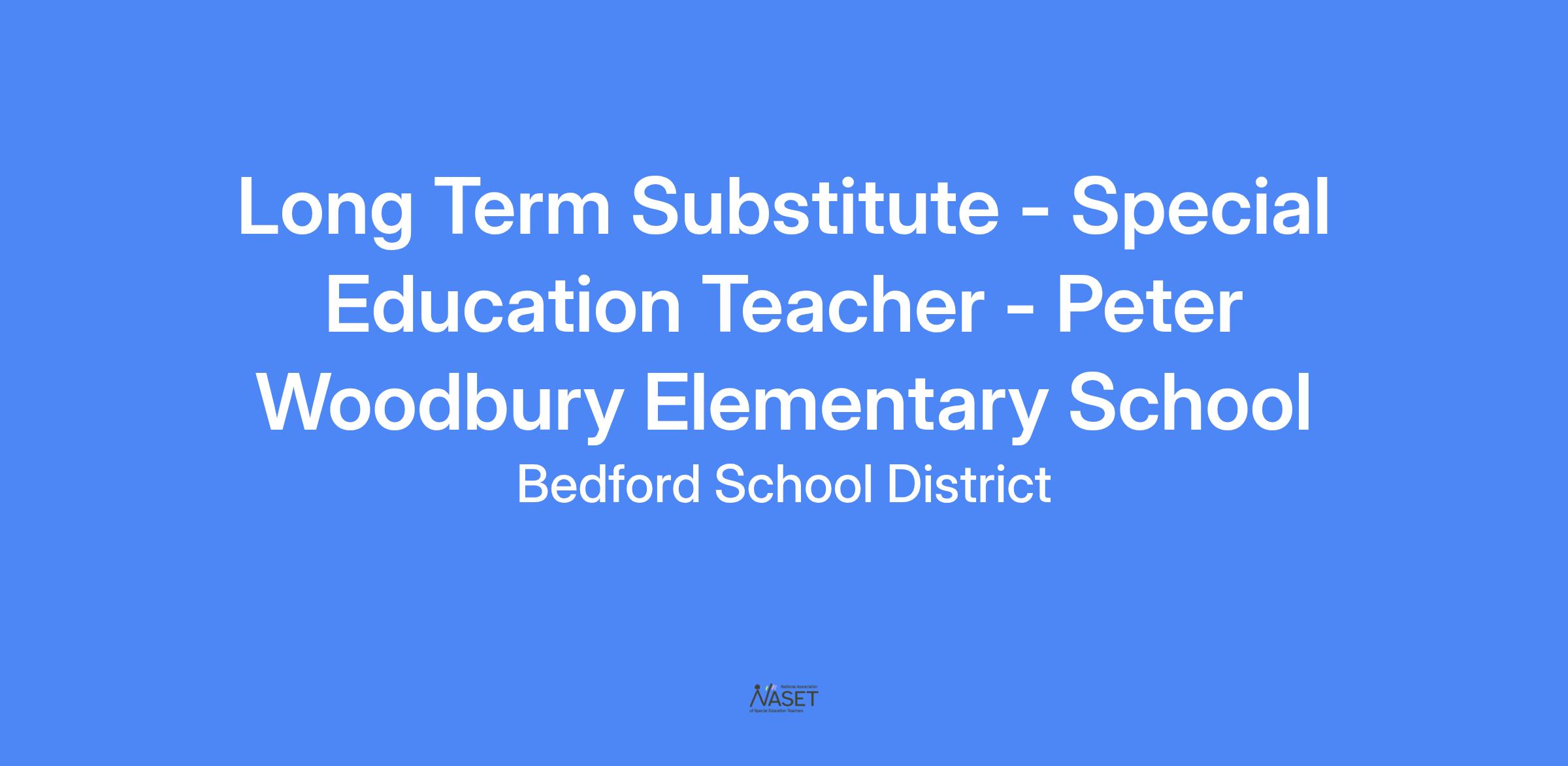 Description: Long Term Substitute Special Education Teacher - Peter Woodbury Elementary School. Assignment Starts November 25, 2025 and ends the end of December.