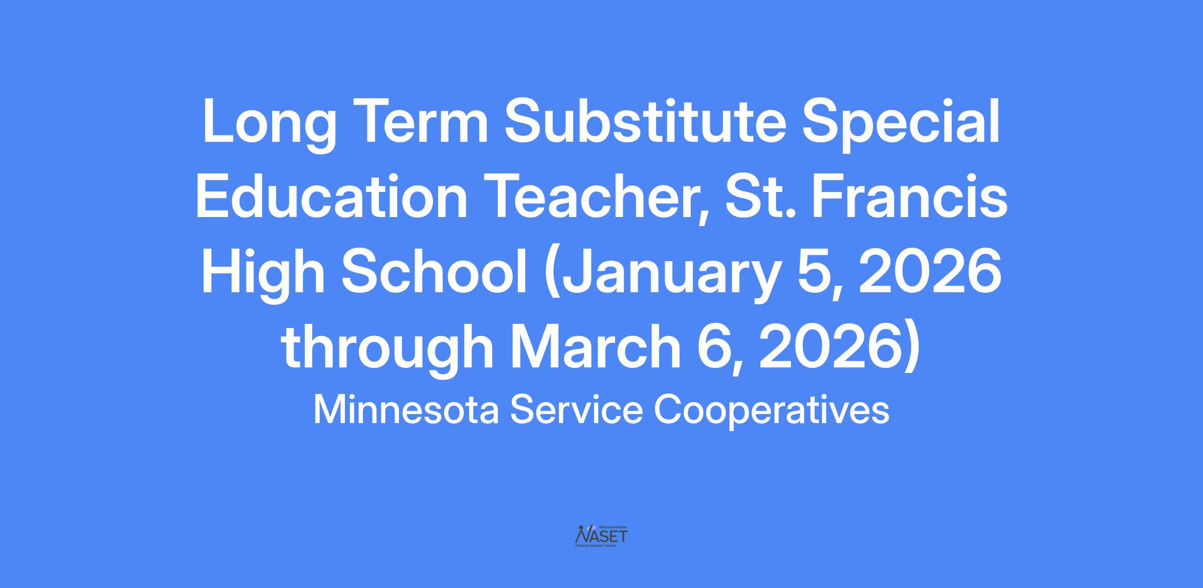 Long Term Substitute Special Education Teacher, St. Francis High School (January 5, 2026 through March 6, 2026)