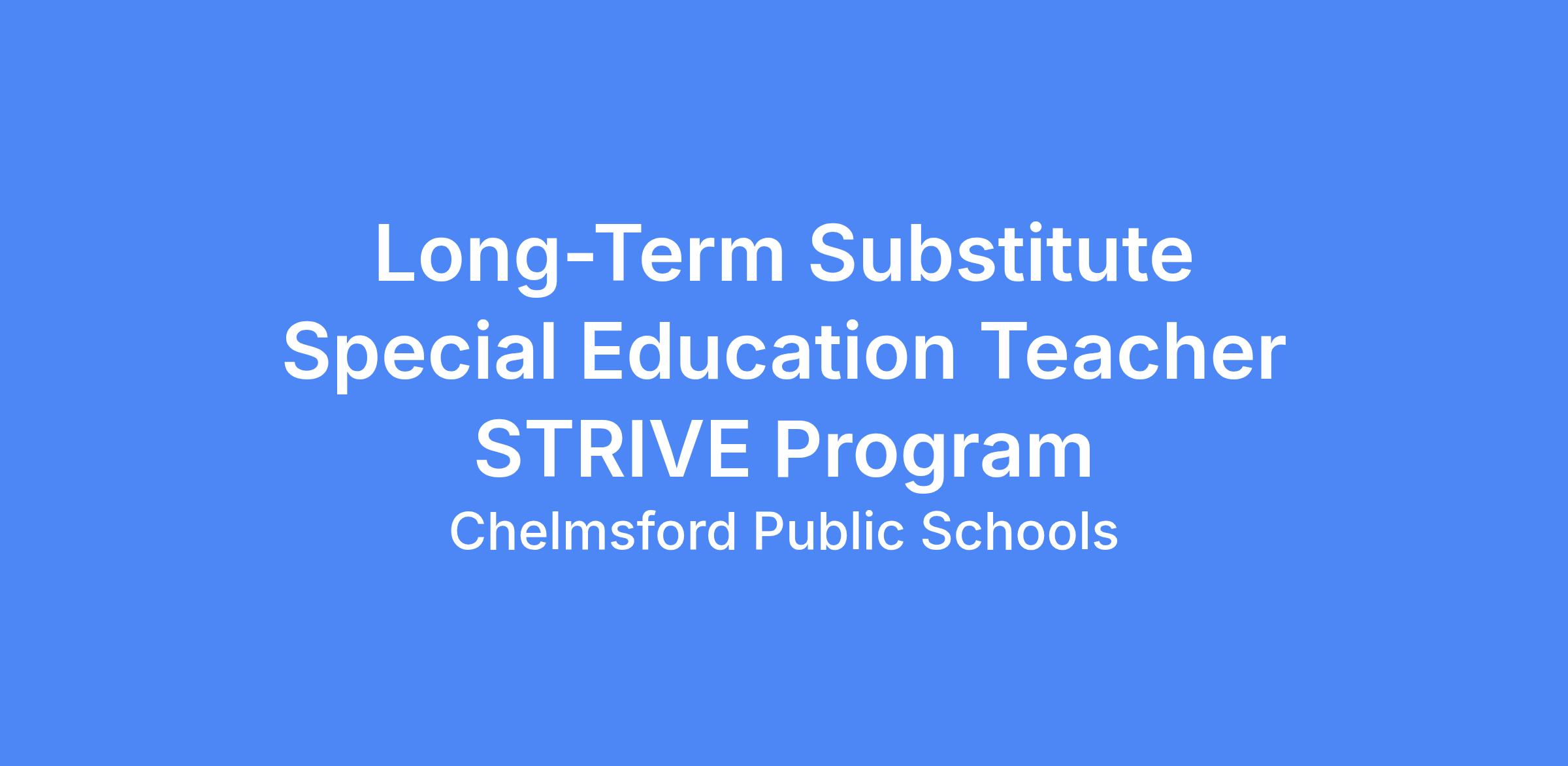 Position: Long-Term Substitute Special Education Teacher (STRIVE Program)