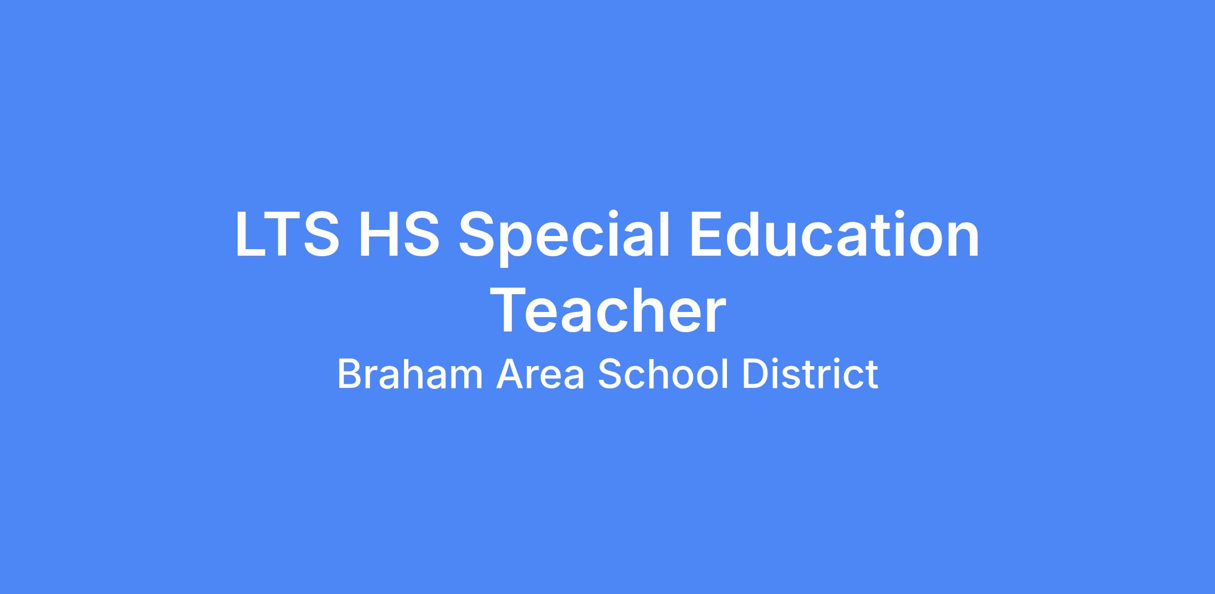 Description: Braham Area Schools has an opening for a Long-Term Sub HS Special Education Teacher starting immediately and to finish out this 2025-2026 school year.