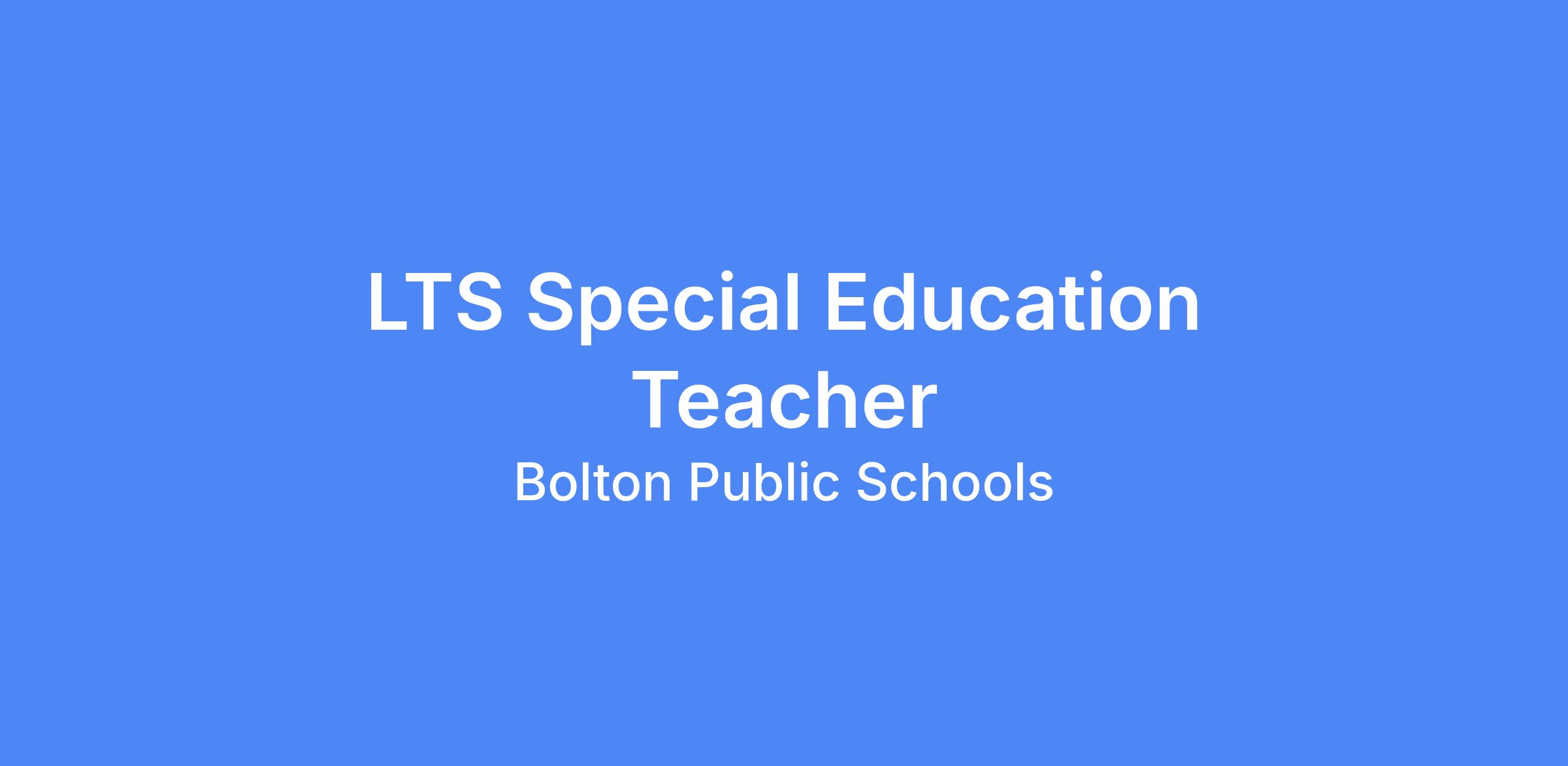 As per article 14.2 of the Board of Education-Bolton Education Association agreement, the following LTS Special Education Teacher is being posted for the 2026-2027 school year.