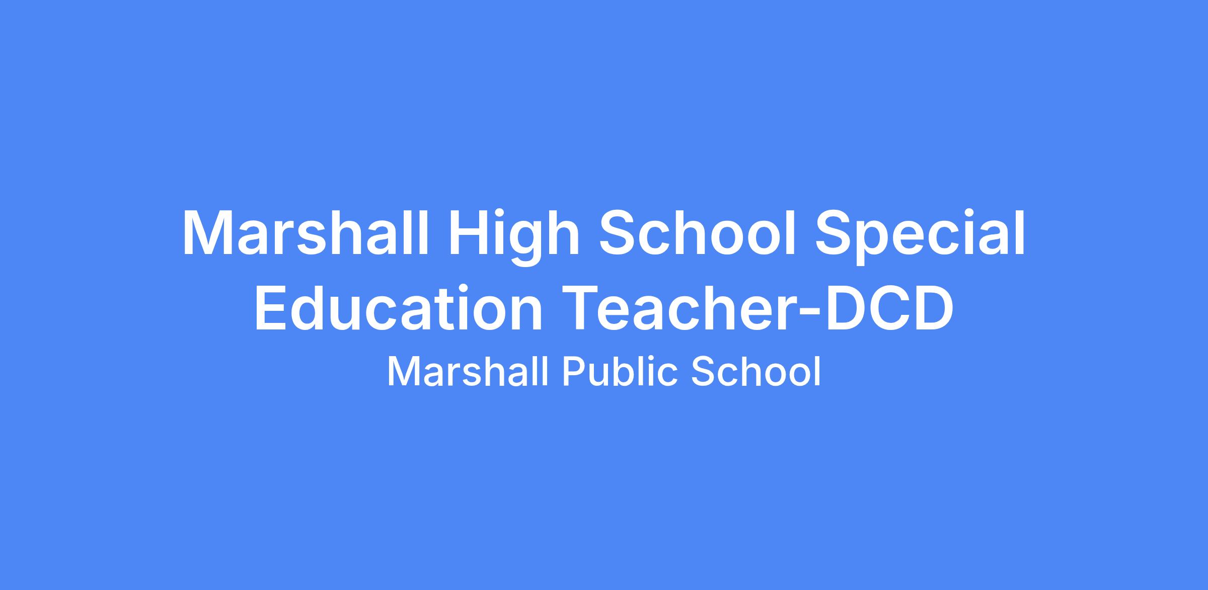 Marshall Public Schools is seeking applications for the position of Marshall High School Special Education Teacher-DCD for the 2026-2027 school year. This position is located at Marshall High School.