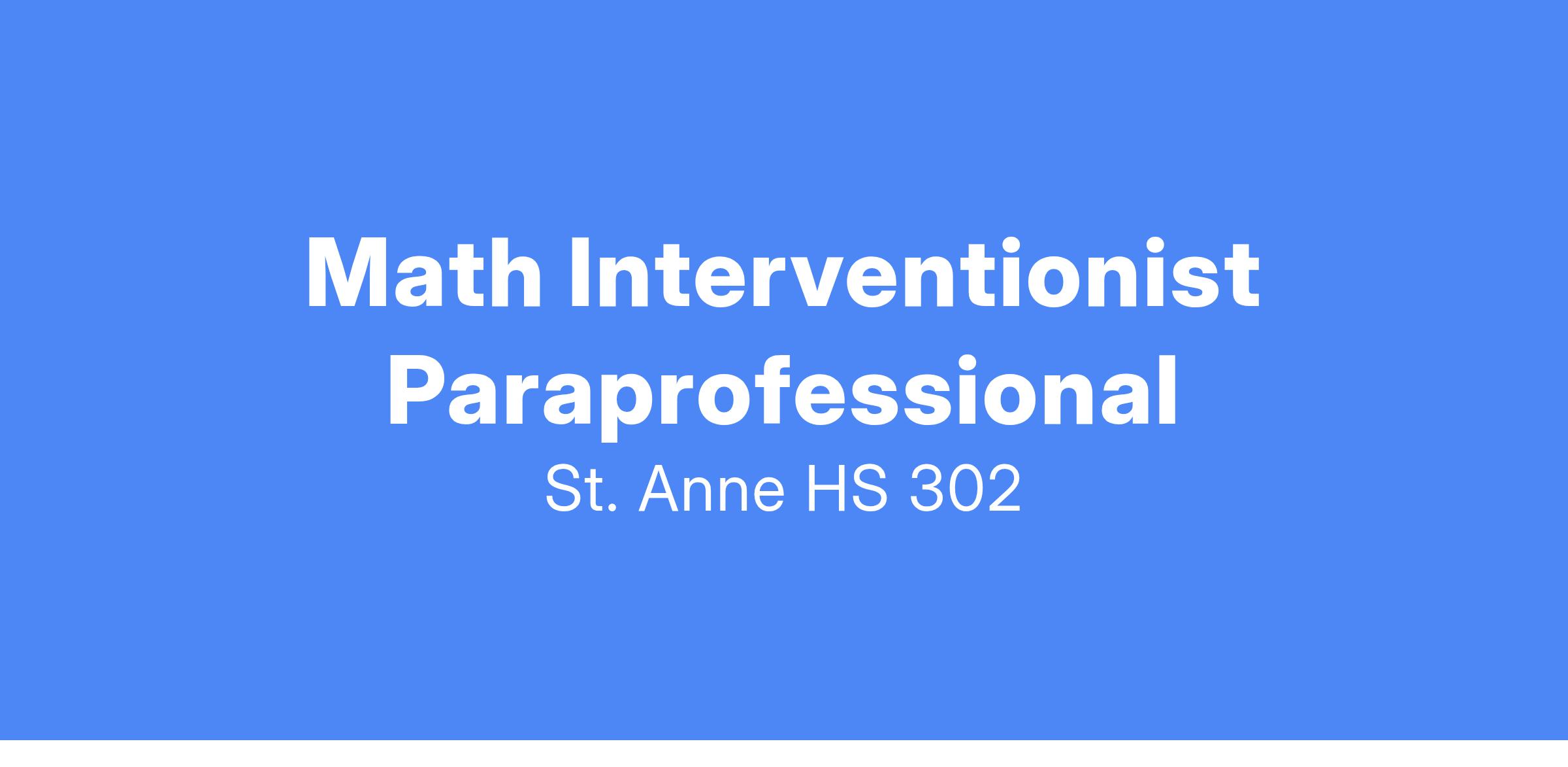 Under the general supervision of the Building Principal and the Special Education Coordinator, the Math Interventionist Paraprofessional will support the implementation of math intervention services for students in grades K–5. This position assists the Math Interventionist in delivering academic support to students, helping to reinforce mathematical concepts and improve student achievement. Additional responsibilities may be assigned by the Math Interventionist and building administration as needed.